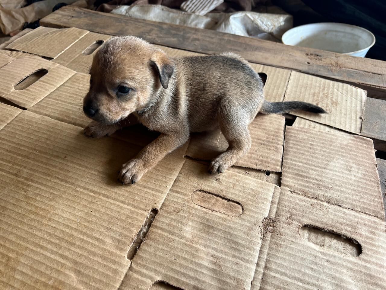 Filhote tem menos de 2 meses de idade e porte médio. Ele possui uma pelagem caramelo e um temperamento extremamente dócil, calmo e sociável. Este filhote é um dos seis irmãos que foram resgatados, pois a mãe foi abandonada na frente do sítio dos meus pais.