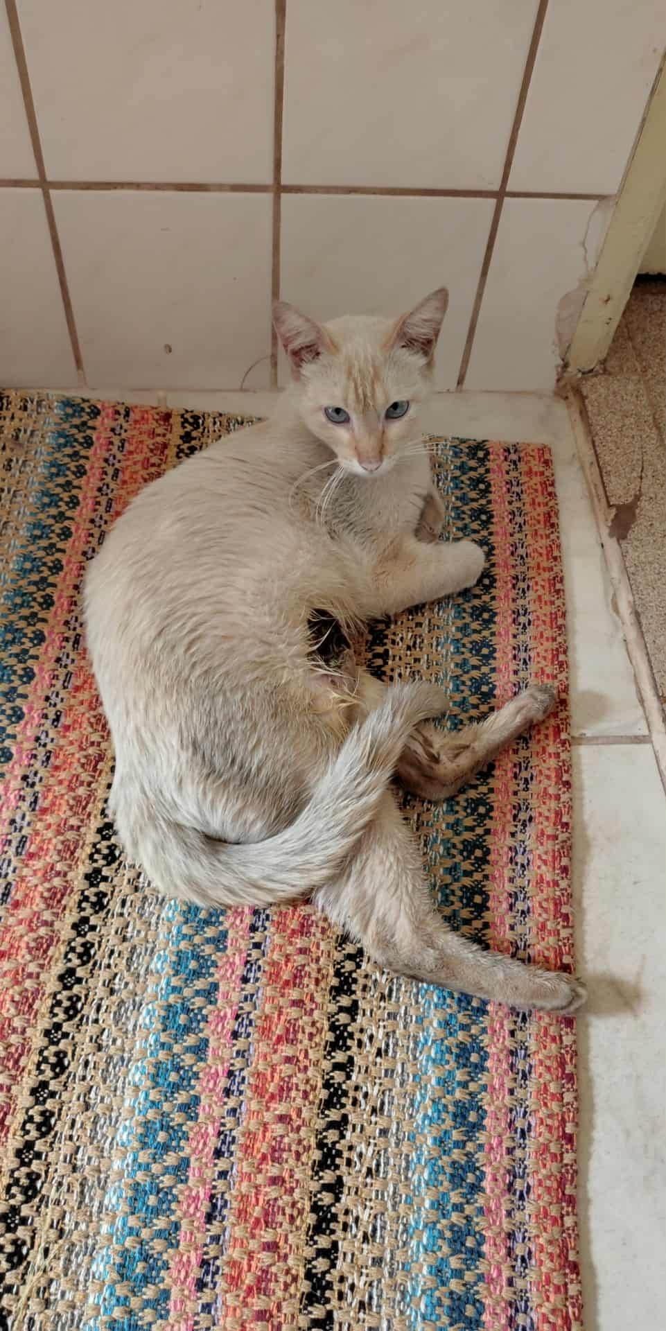 Gatinho bege olhos azuis, castrado deve ter uns anos, muito mansinho, castrado, encontrei nos campos elísios, Ribeirão preto,estou procurando o tutor dele