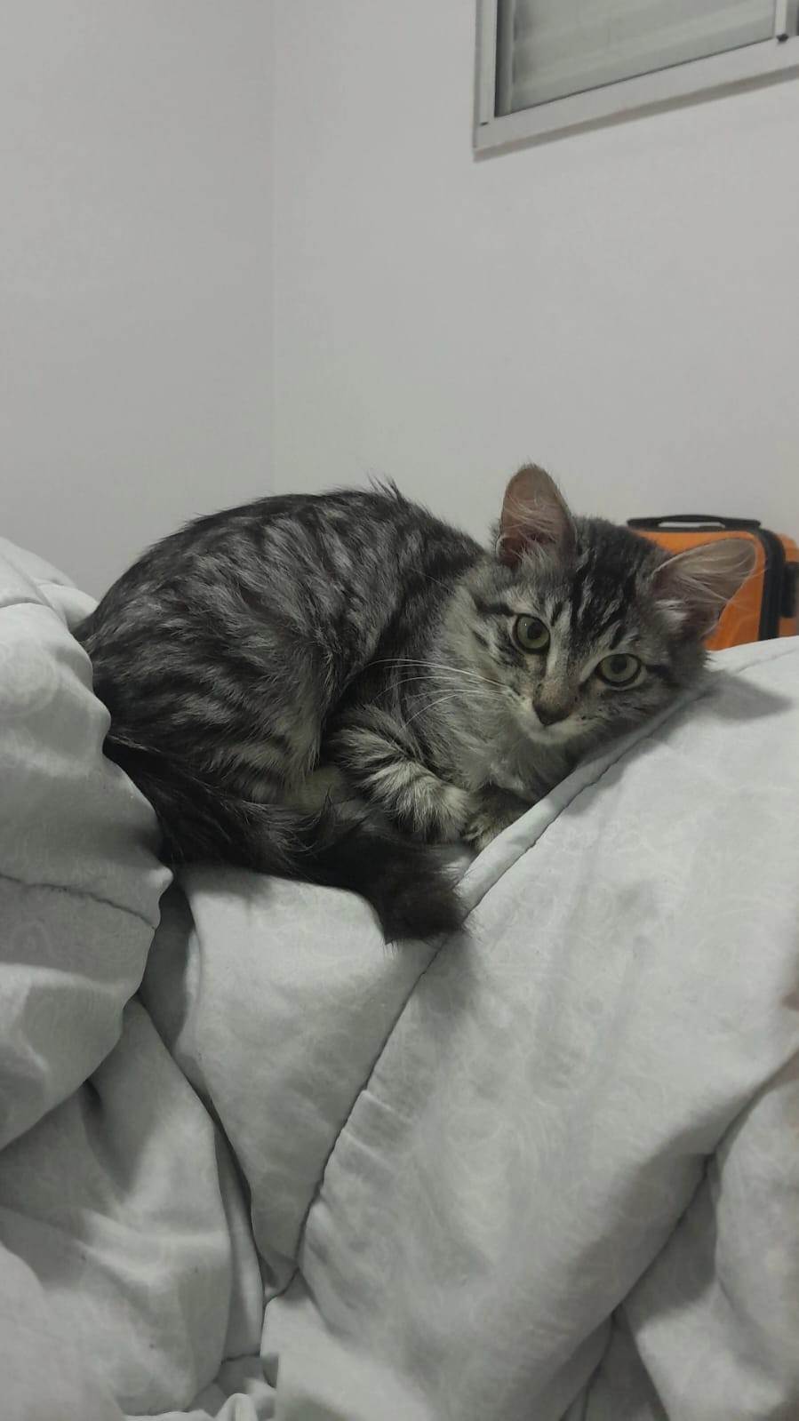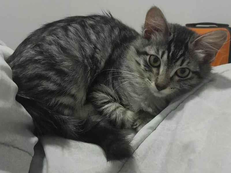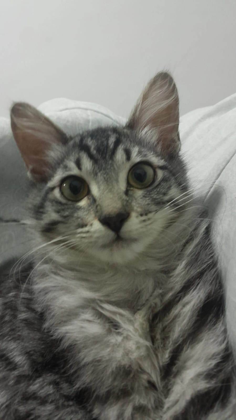 Mirra é uma adorável gatinha com aproximadamente 2 a 6 meses de idade. Com sua pelagem cinza rajada, ela encanta a todos por onde passa. De porte médio, Mirra já foi vermifugada e está pronta para encontrar um lar cheio de amor. Seu temperamento é uma mistura perfeita de doçura e diversão. Mirra é extremamente dócil, calma e, ao mesmo tempo, brincalhona. Muito sociável, ela se dá bem com outros gatos, cachorros e adora a companhia de crianças, idosos e até mesmo desconhecidos. Essa carentinha vai adorar estar perto de você, seja em um apartamento ou em uma casa com quintal. Mirra busca uma família que a acolha e onde ela possa compartilhar todo o seu carinho e alegria. Adotar a Mirra será uma decisão cheia de recompensas, trazendo para o seu lar a companhia de uma felina encantadora e cheia de vida. Venha conhecê-la e prepare-se para se apaixonar por essa gatinha especial!