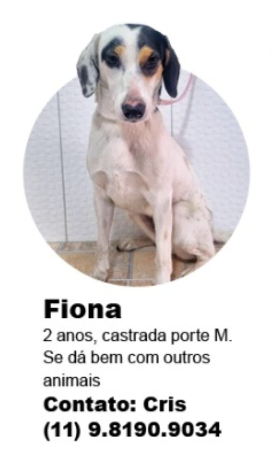 🐾 FIONA – 2 ANOS – PORTE MÉDIO – CASTRADA 🐾