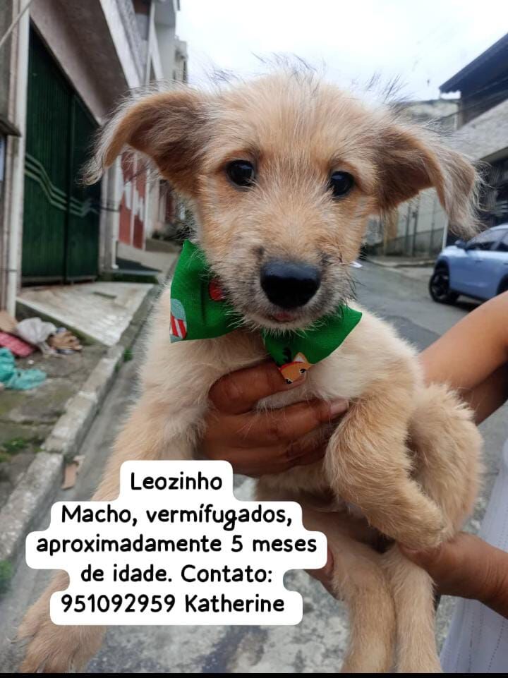 Leozinho é um cãozinho da raça SRD-Vira-Lata. Ele tem 5 meses, é de porte médio e possui uma pelagem caramelizada que derrete corações. Leozinho é um verdadeiro amor, com um temperamento dócil, calmo e muito brincalhão.