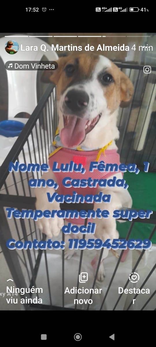 Lulu foi resgata e cuidada, hoje vive em um abrigo com outros animais e precisa urgente de uma família.
