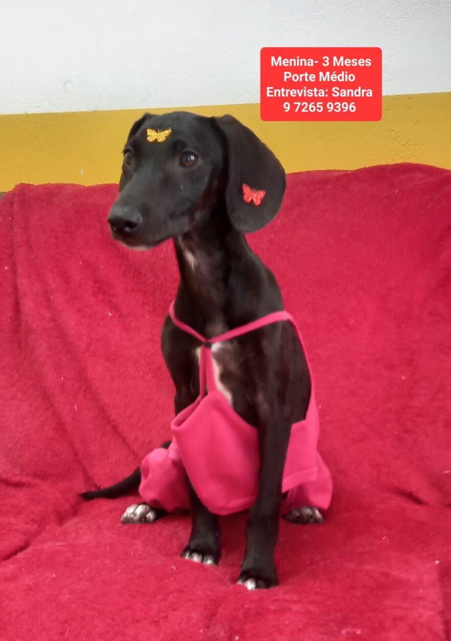 Maria Julia é uma adorável cachorrinha SRD (vira-lata) com pelagem preta! Ela tem 3 meses, é de porte médio e é a companhia perfeita para qualquer lar. Com um temperamento dócil e calmo, Maju é brincalhona, sociável e cheia de amor para dar. Ela adora estar perto de pessoas, crianças e até mesmo de outros animais, incluindo gatos e cães.