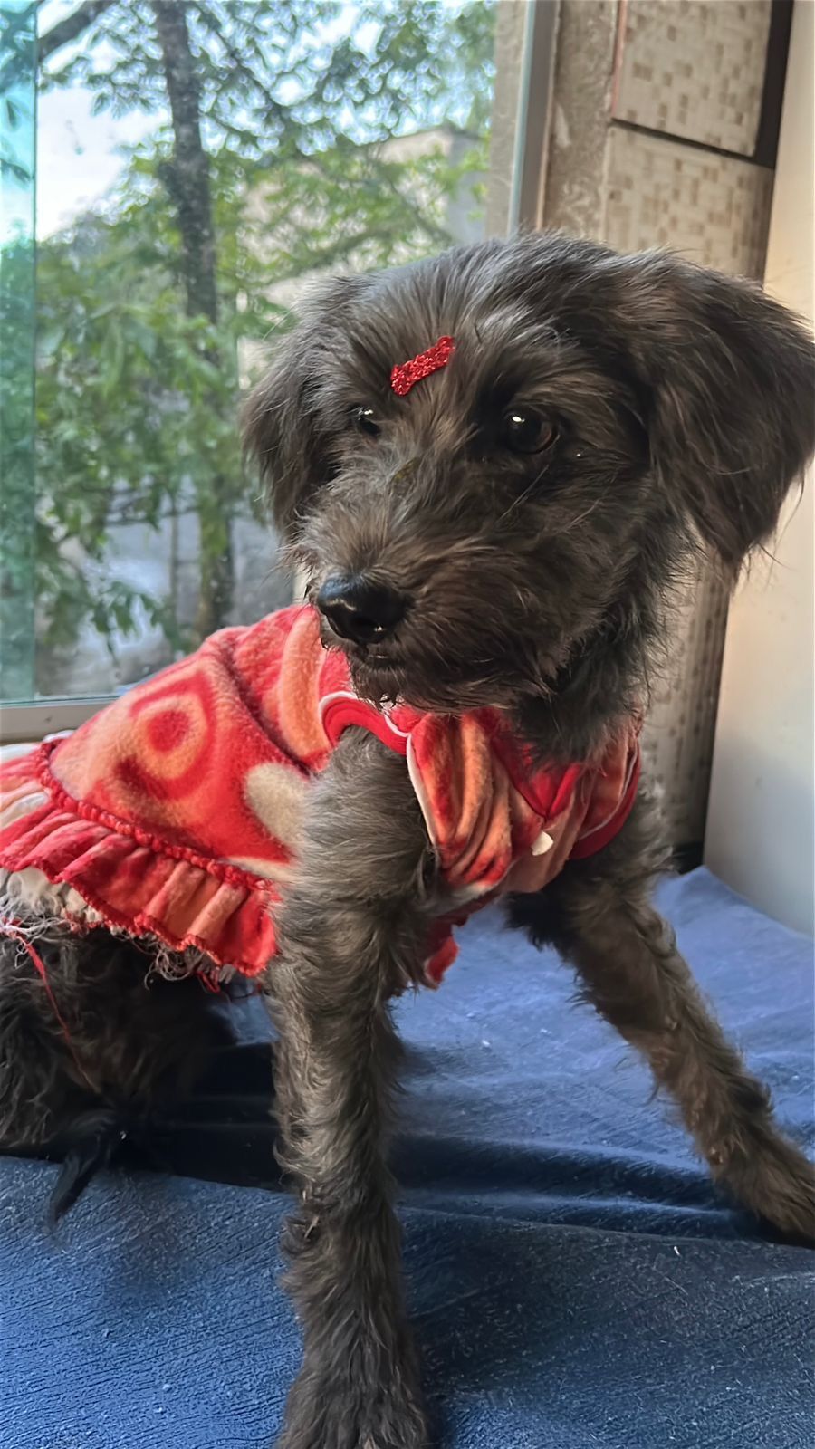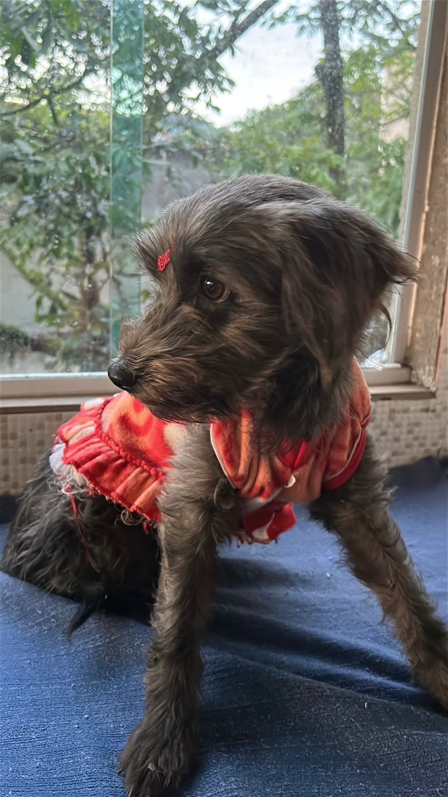 Matilda é uma SRD (Vira Lata) de pelagem cinza, tem 1 ano, é de porte médio e possui um temperamento incrivelmente dócil e calmo. Ela é muito brincalhona e adora interagir com pessoas, crianças e até com outros animais. É uma cachorrinha sociável que se dá bem com gatos, cães e desconhecidos, além de ser uma ótima companhia para idosos.