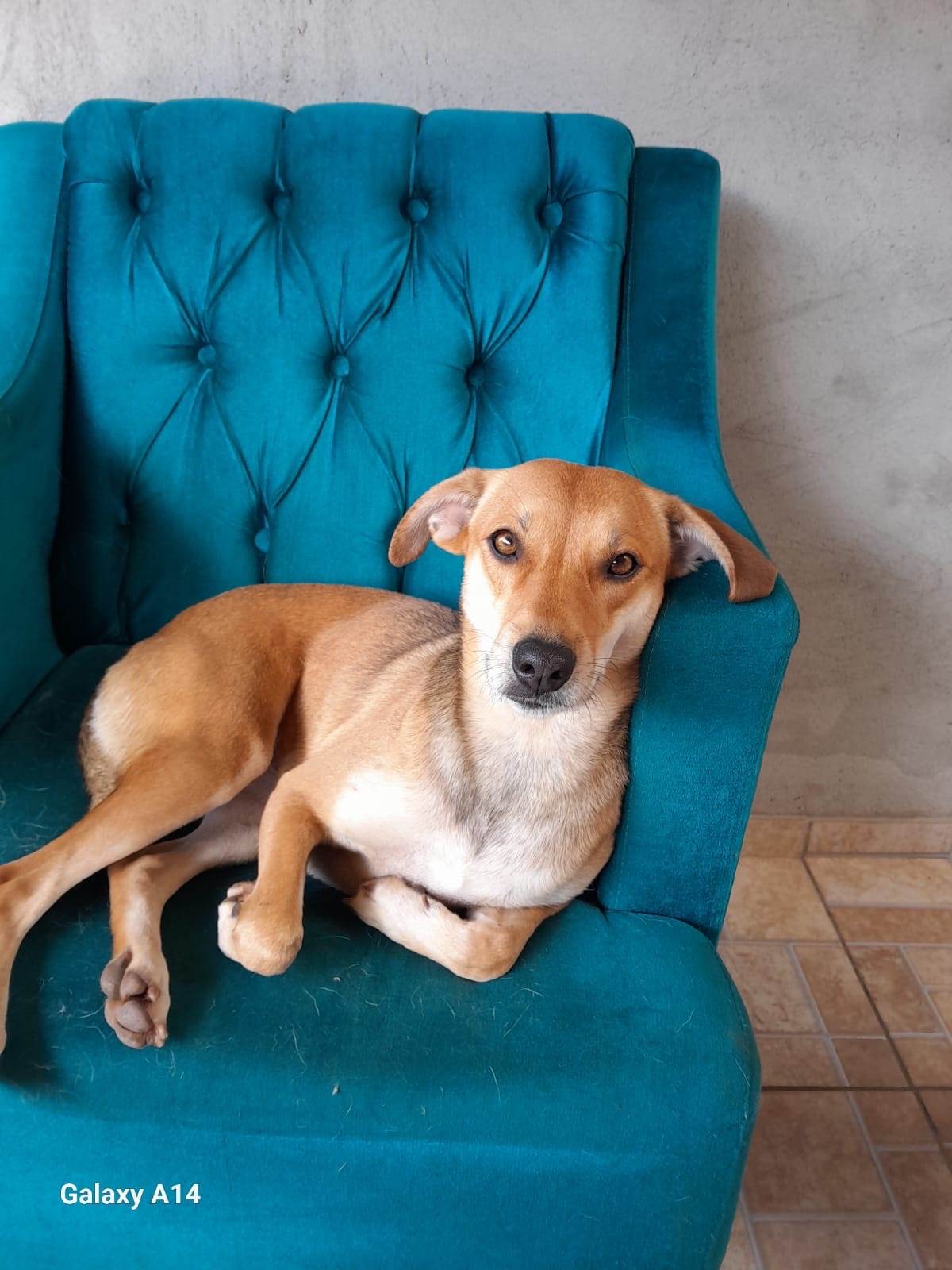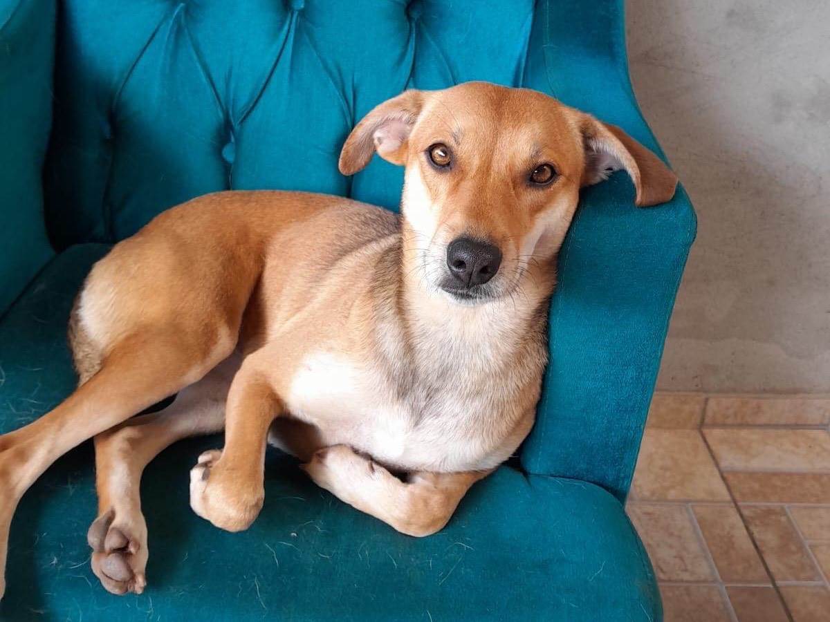 Meg foi resgatada e precisa urgente de uma família.É extremamente dócil com crianças e outros animais.