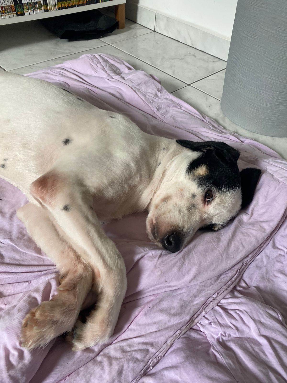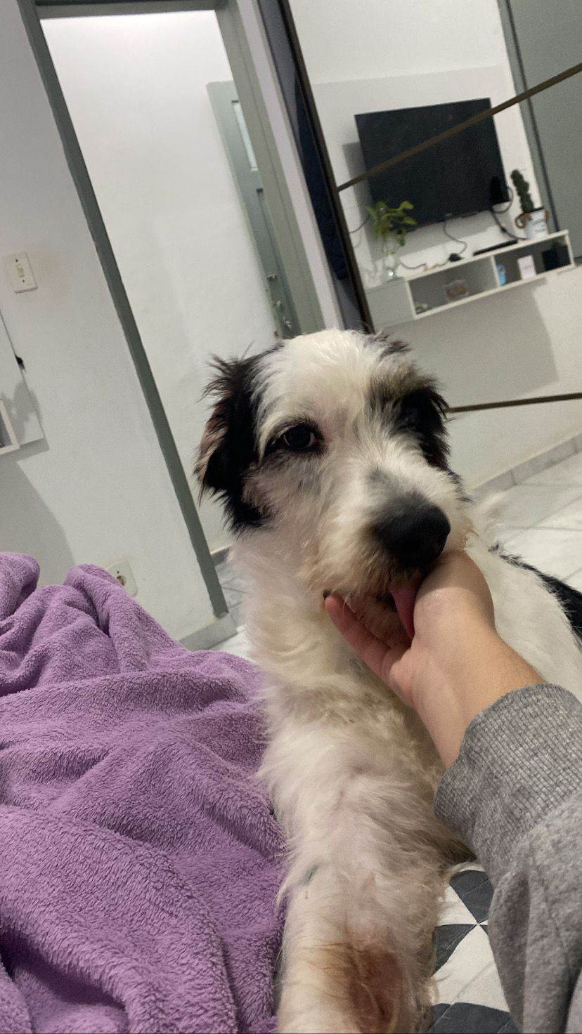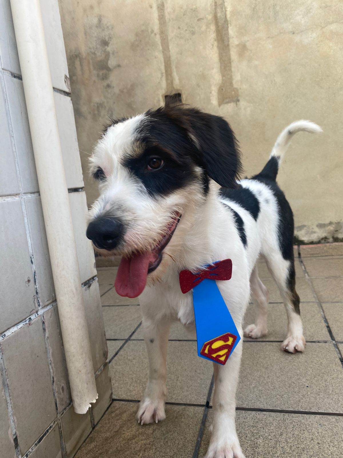 (Caso Resolvido - ANIMAL ADOTADO)  Jesse  Macho   Raça: SRD-ViraLata  Porte: Medio   Idade: 2 anos Pelagem: Branca e preta    Ele é muito dócil e um animal incrível para se ter com crianças e outros animais.