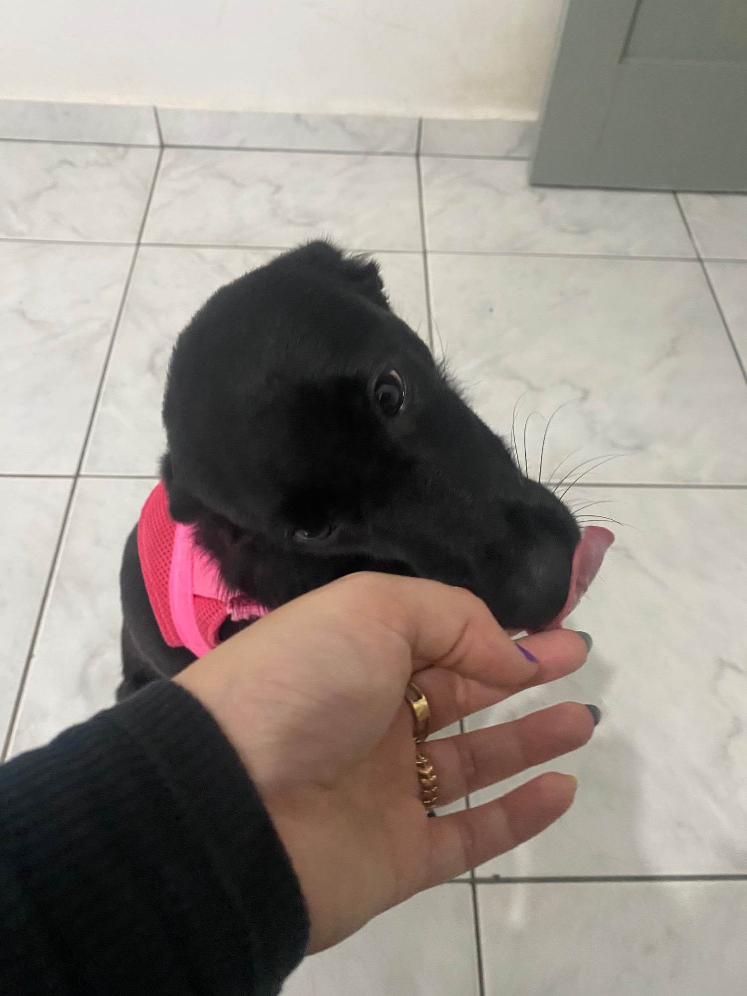 Ela é EXTREMAMENTE dócil, incrível e fofa. Ela é uma cachorrinha que se o mundo dependesse do amor dela, todos estariam salvos.