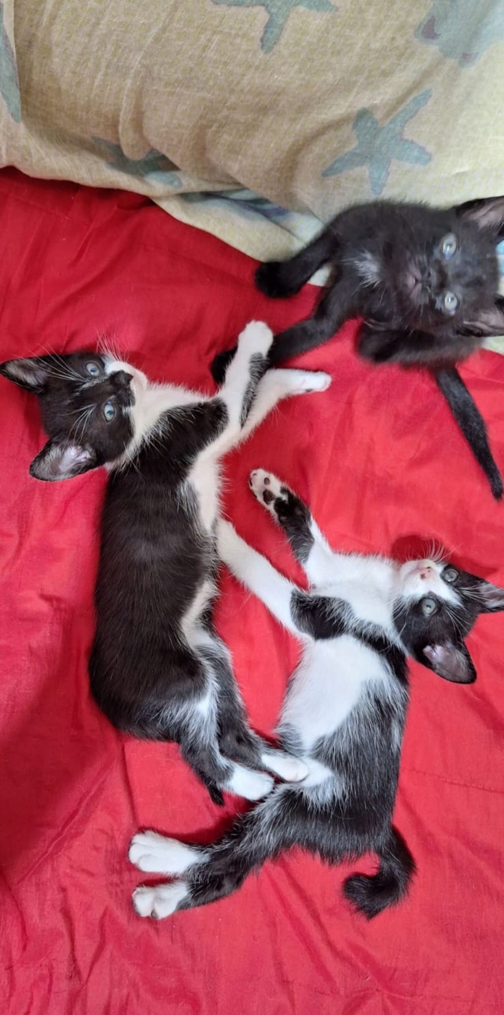 Dois lindos gatinhos de cerca de dois meses, um preto e um Frajola, e a irmãzinha Frajola para adoção, apenas lares fechados sem rota de fuga ou com telas nas janelas. São resgatados na rua, usam caixa de areia e comem ração, são muito brincalhões. Falar com a Denise no WhatsApp 11 99629.3633. estão em São Bernardo do Campo. Será feito o acompanhamento até a castração aos seis meses, oferecemos Clínica parceira com preço popular, ou até mesmo podemos procurar a castração gratuita no Zoonoses de São Bernardo.