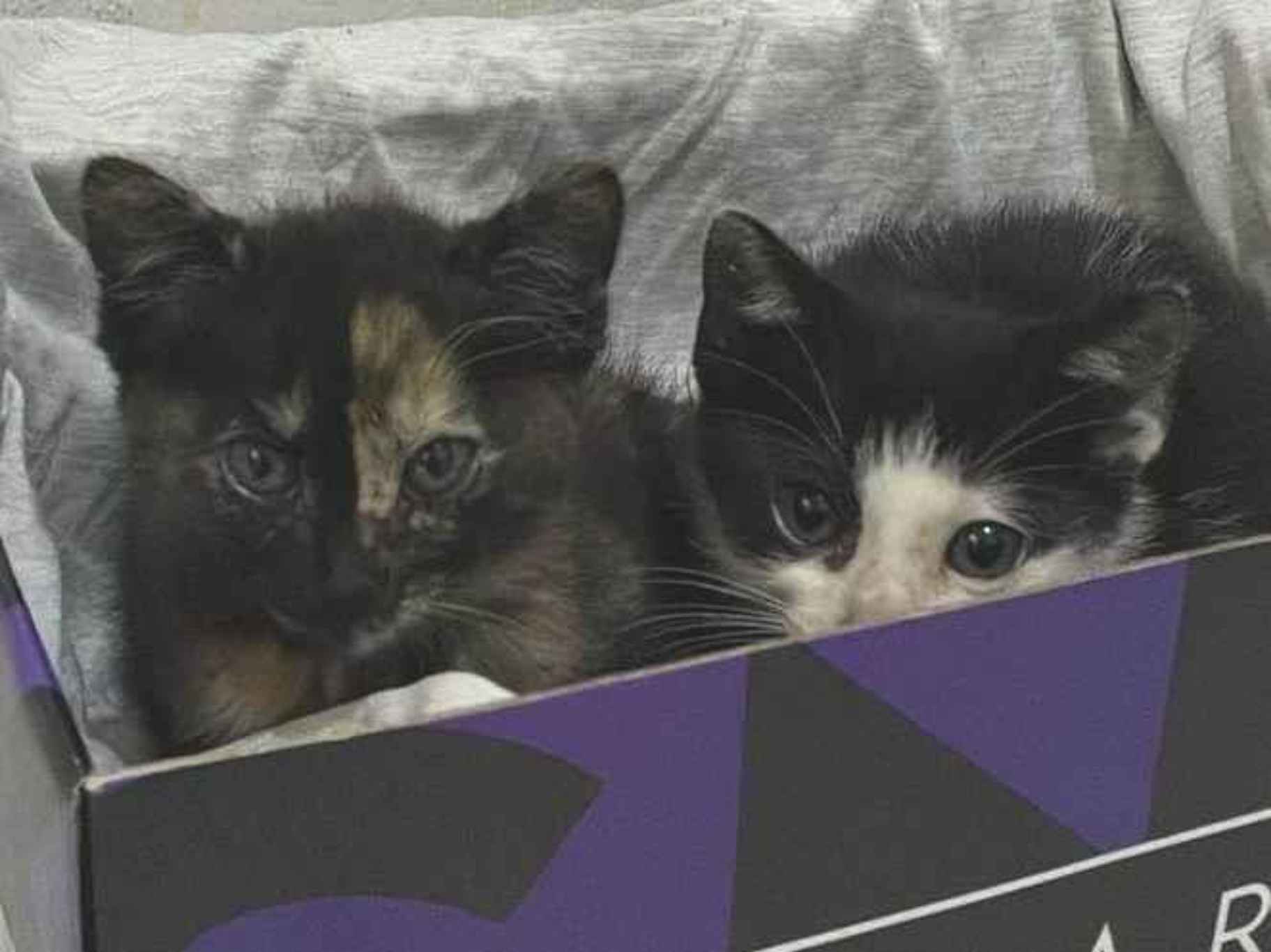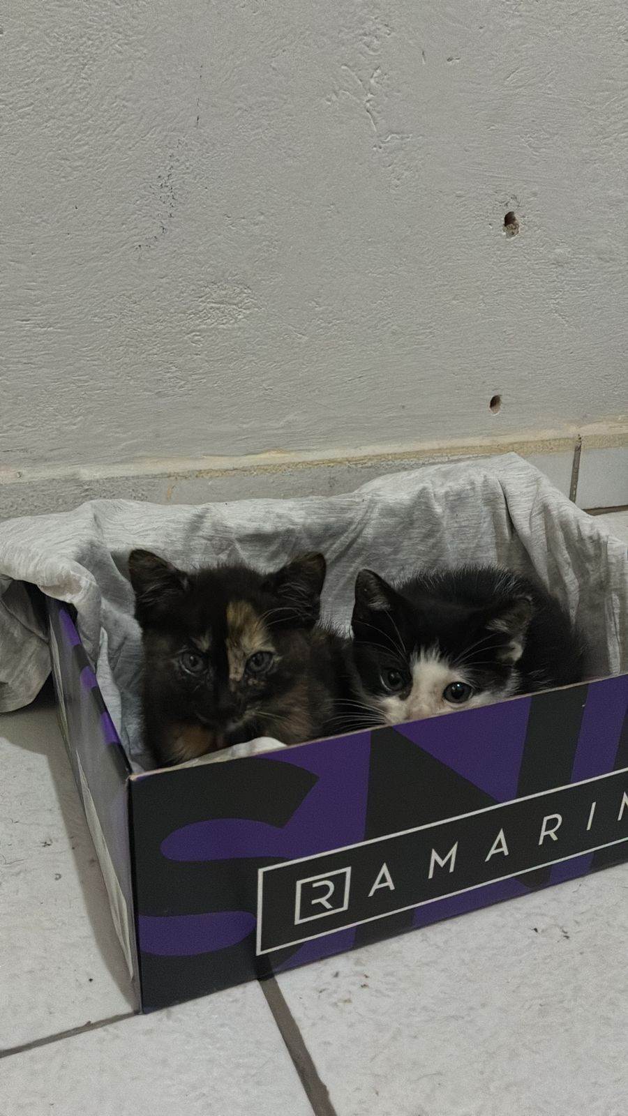 Resgatados da rua. Mas deviam ter tido cuidados pois já sabem usar a caixa de areia e comem ração.