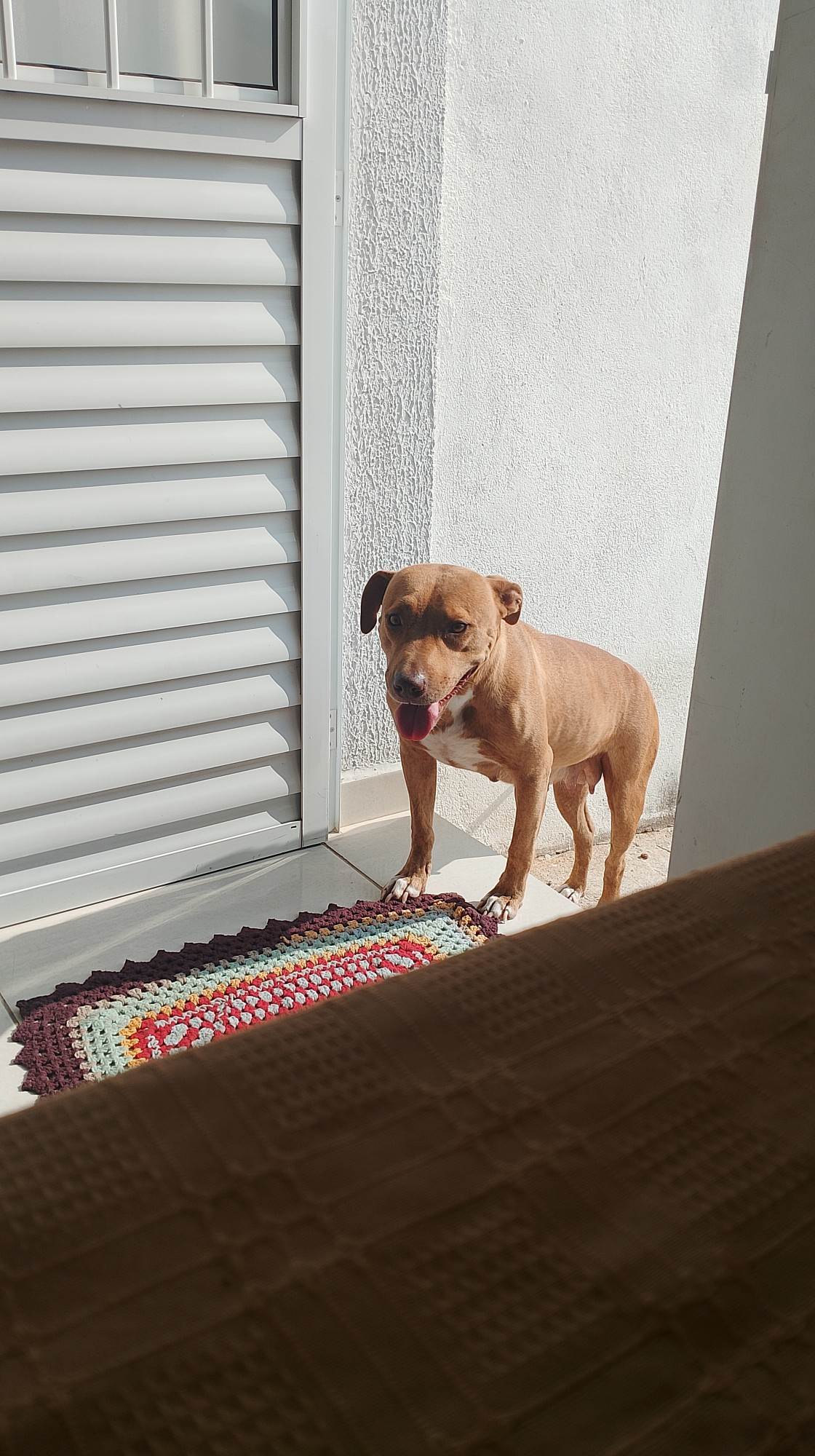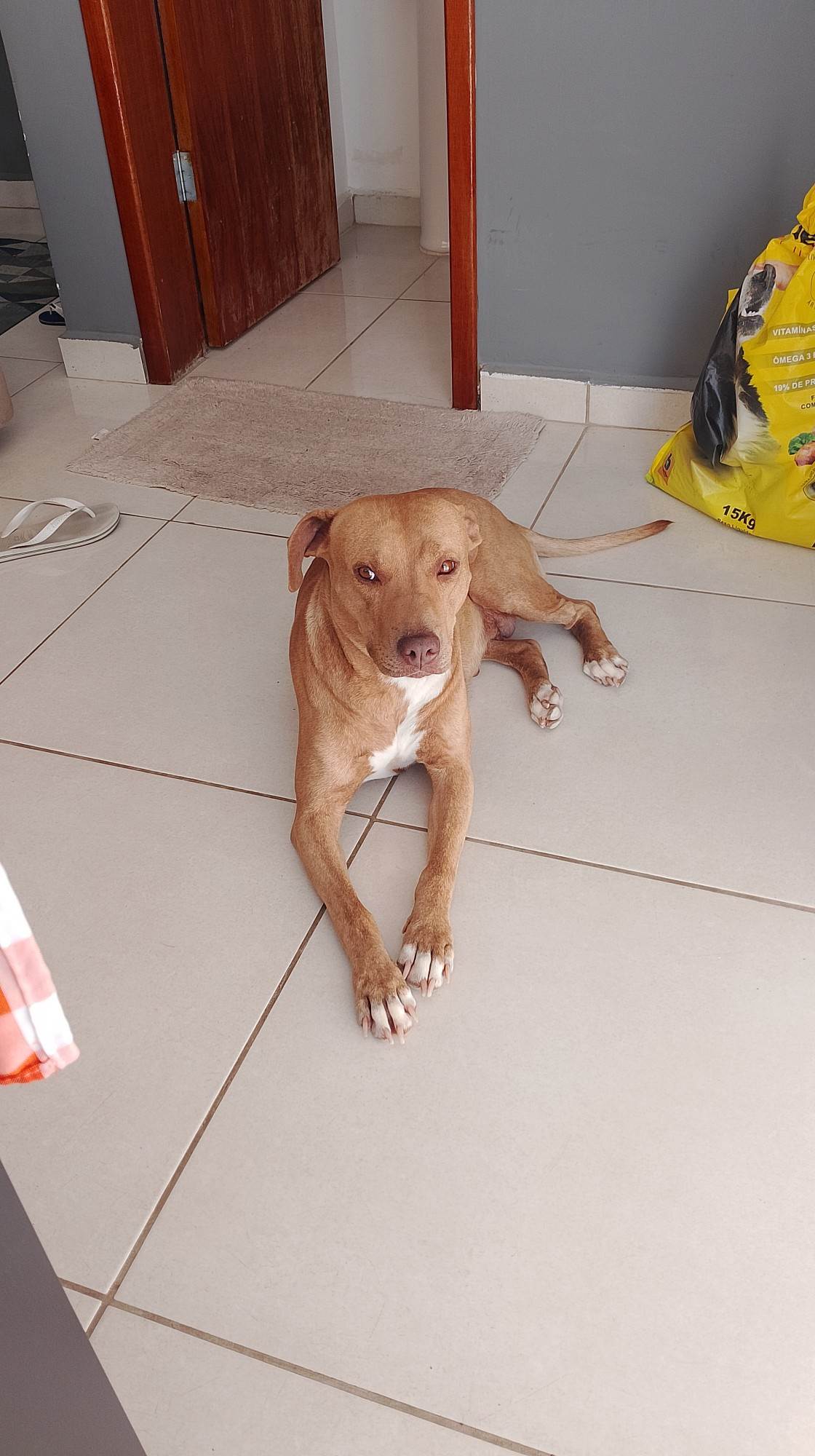 O motivo da doação é porque meu quintal é impróprio, causando feridas semanalmente nas patas dela. Outro motivo é que ela gosta de atenção e de brincar, mas, minha esposa e eu ficamos o dia fora e não conseguimos proporcionar isso a ele. Por este motivo, hoje ela se sente bem triste.