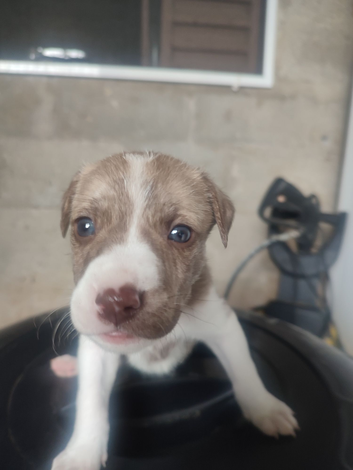 Este é um lindo cão macho, ainda sem nome, da raça SRD-ViraLata. Com menos de 2 meses de idade e porte médio, ele apresenta uma pelagem rajada com manchas brancas. Seu temperamento é adorável: é dócil, calmo e brincalhão, tornando-o um companheiro perfeito para qualquer família.