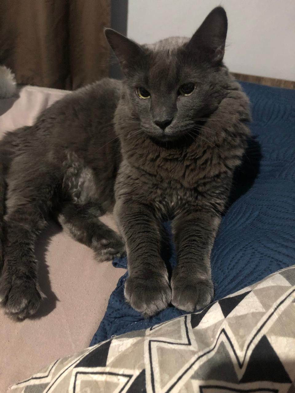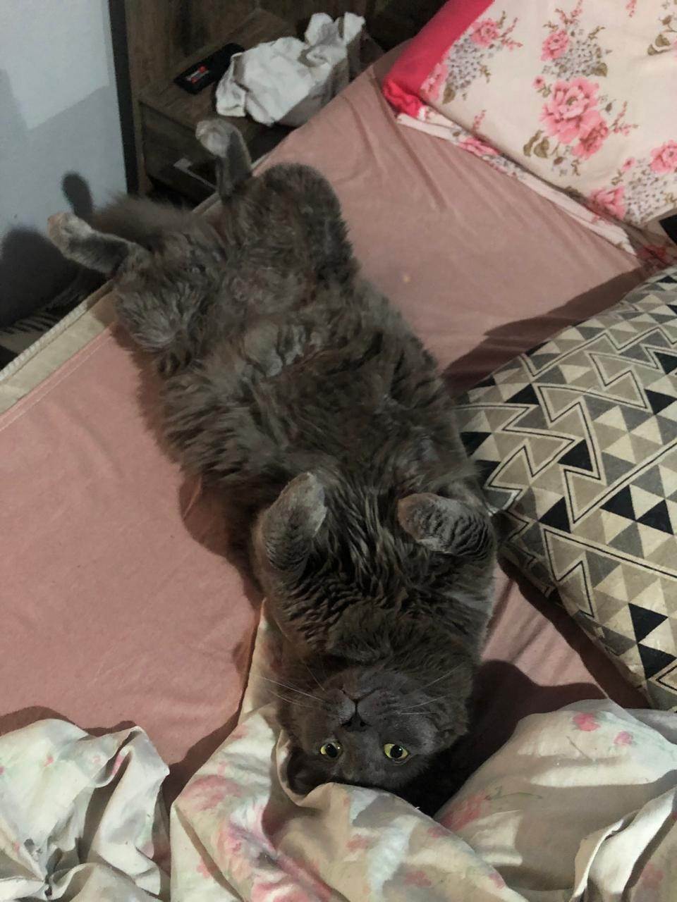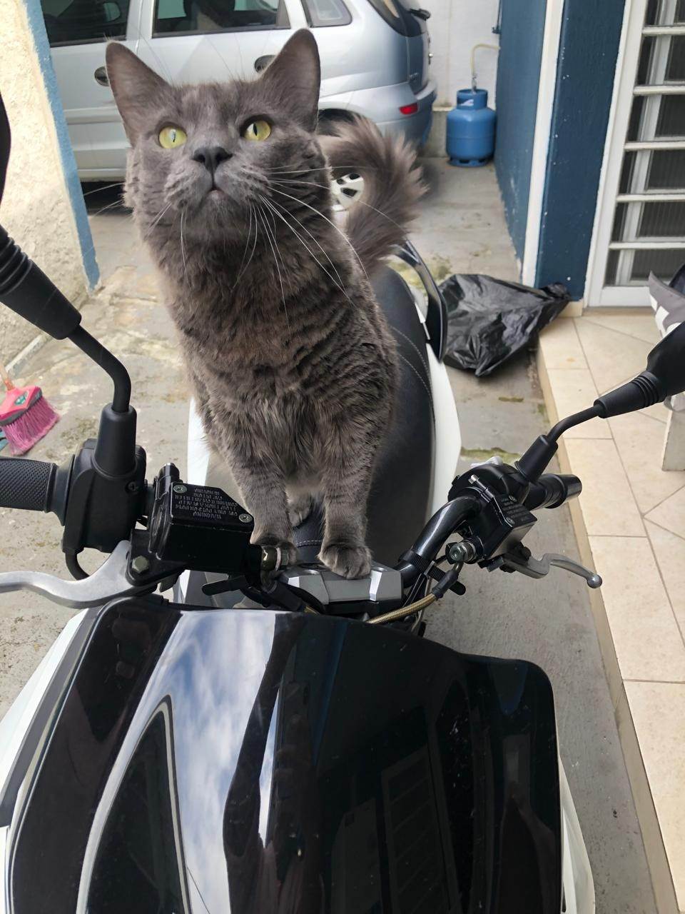 Tenho aproximadamente 3 anos, sou castrado, muito dócil e apaixonado por carinho (principalmente no rabo). Me dou muito bem com crianças, adoro sachês e petiscos, e sou um excelente caçador — baratas, ratos, lagartixas e passarinhos não escapam de mim.
