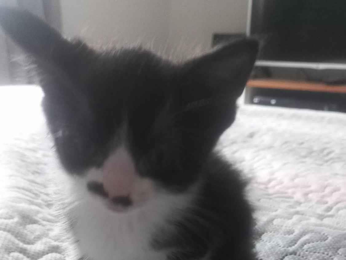 Gatinha de uma mes e meio muito dócil, carinhosa .Come ração e usa a caixa de areia .