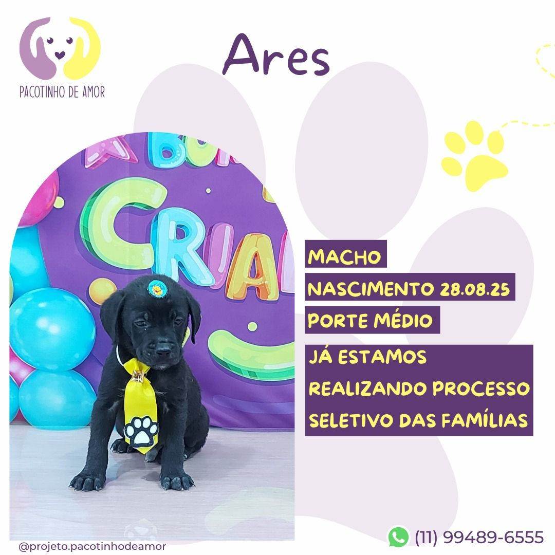 Ares  Macho   Raça: SRD-ViraLata  Porte: Medio   Idade: 2 a 6 meses Pelagem: Branca/Preta    Critérios para adoção