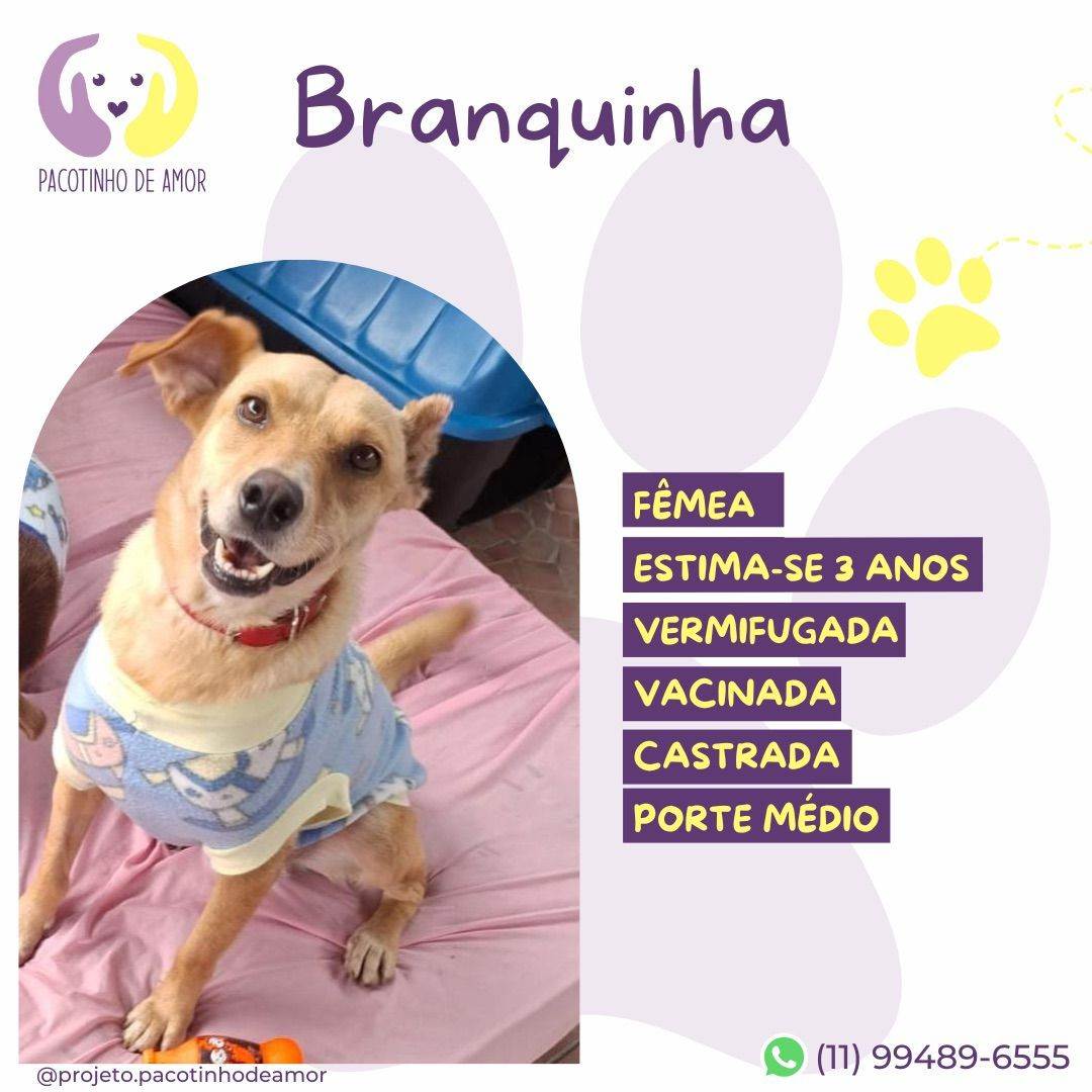 Branquinha  Fêmea   Raça: SRD-ViraLata  Porte: Medio   Idade: 4 anos Pelagem: Amarelo    Critérios para adoção