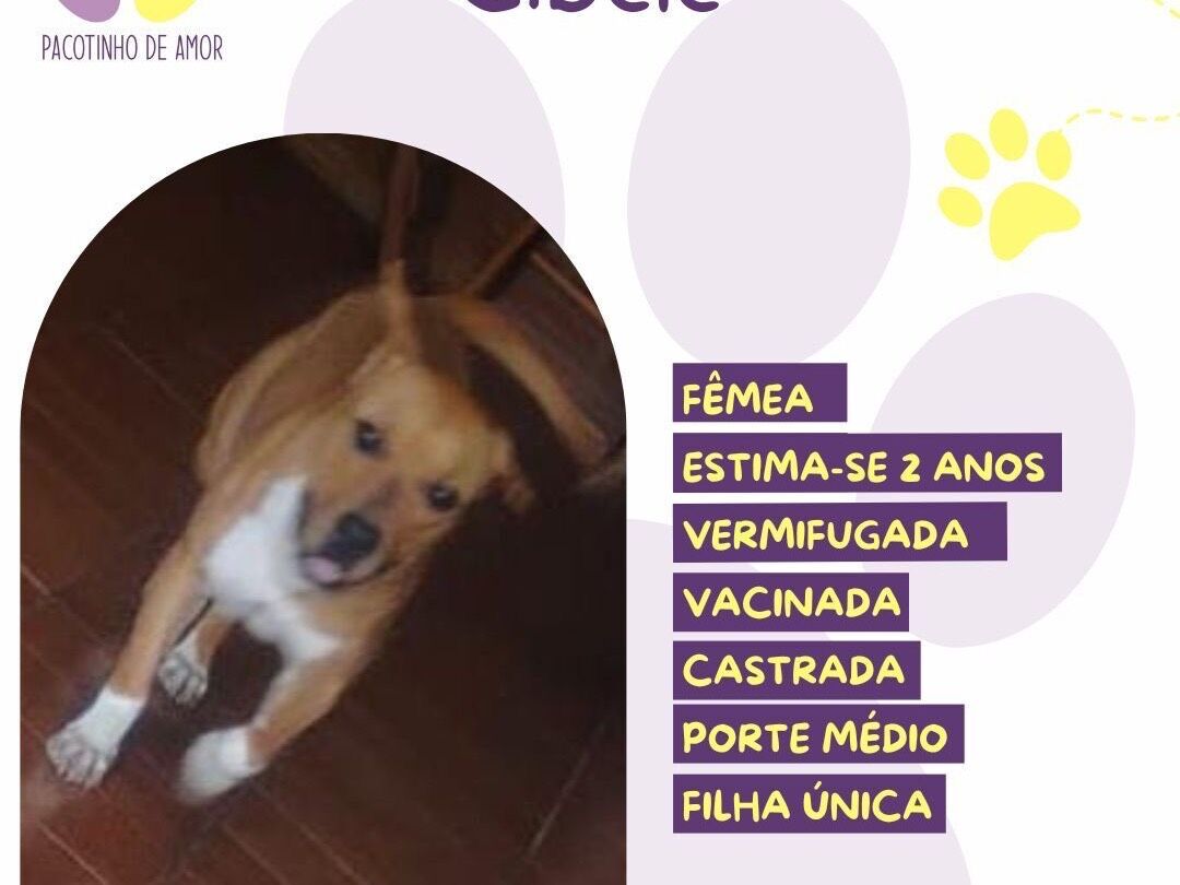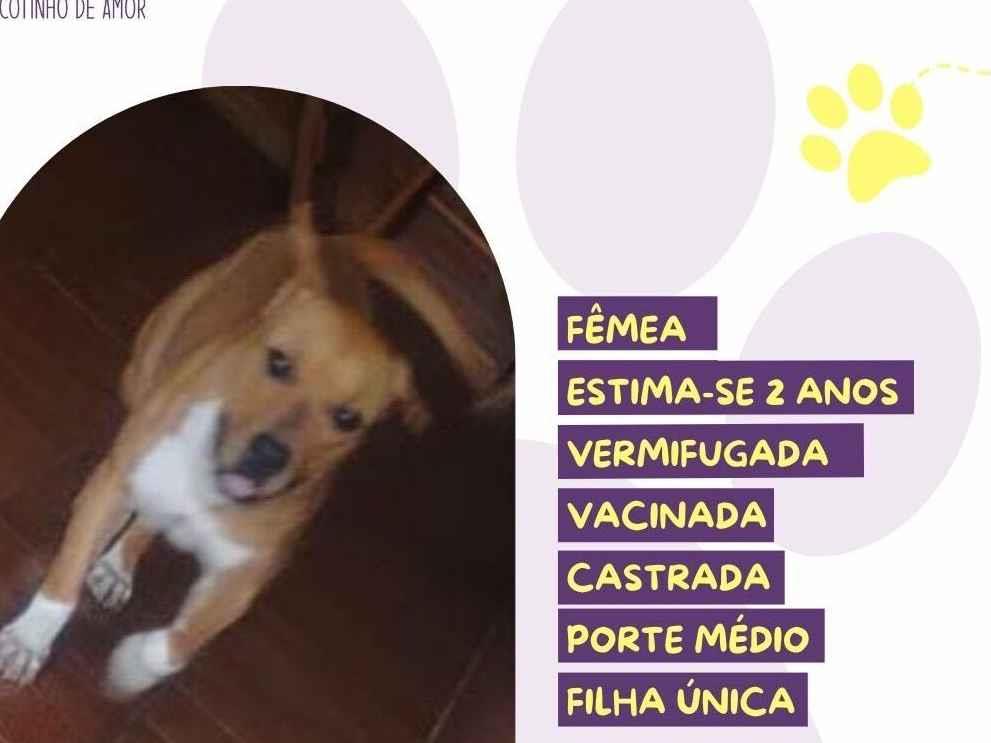 Cibele  Fêmea   Raça: SRD-ViraLata  Porte: Medio   Idade: 2 anos Pelagem: Caramela
