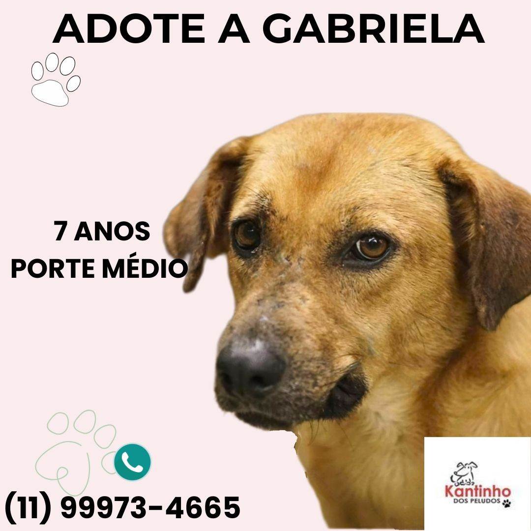 Conheça Gabriela, uma cadela dócil e carinhosa de 7 anos. Ela busca uma família amorosa. Adoção responsável e cheia de carinho. Venha fazer a diferença.
