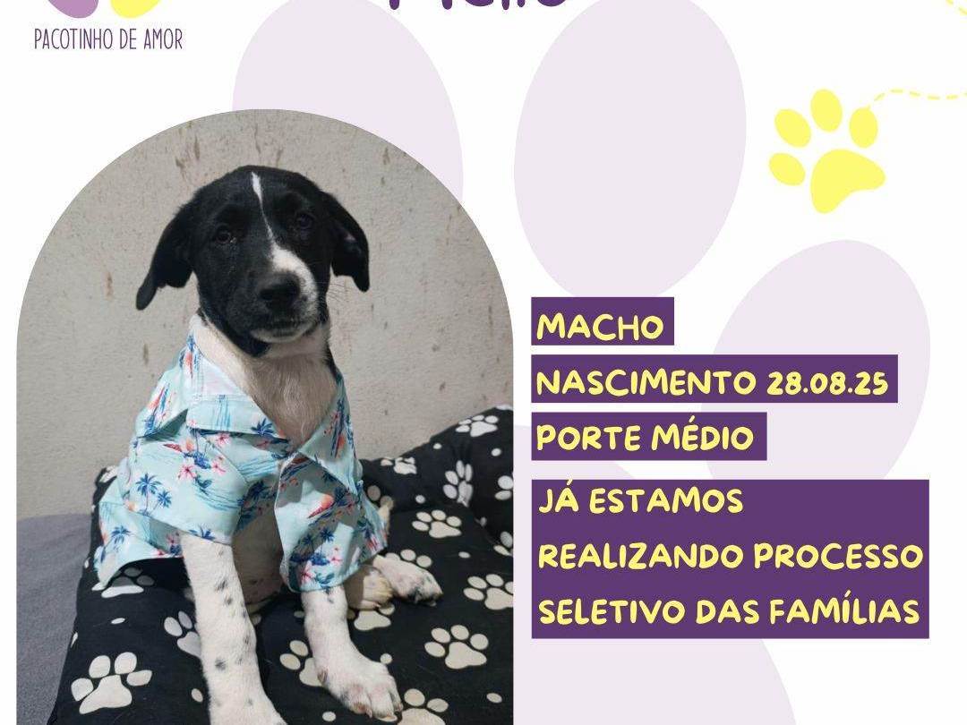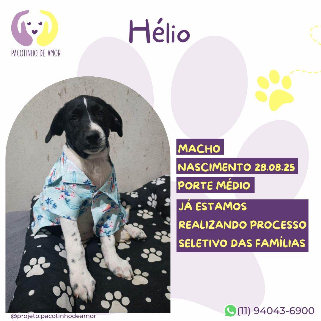 Hélio  Macho   Raça: SRD-ViraLata  Porte: Medio   Idade: 2 a 6 meses Pelagem: Branca/Preta    Critérios para adoção
