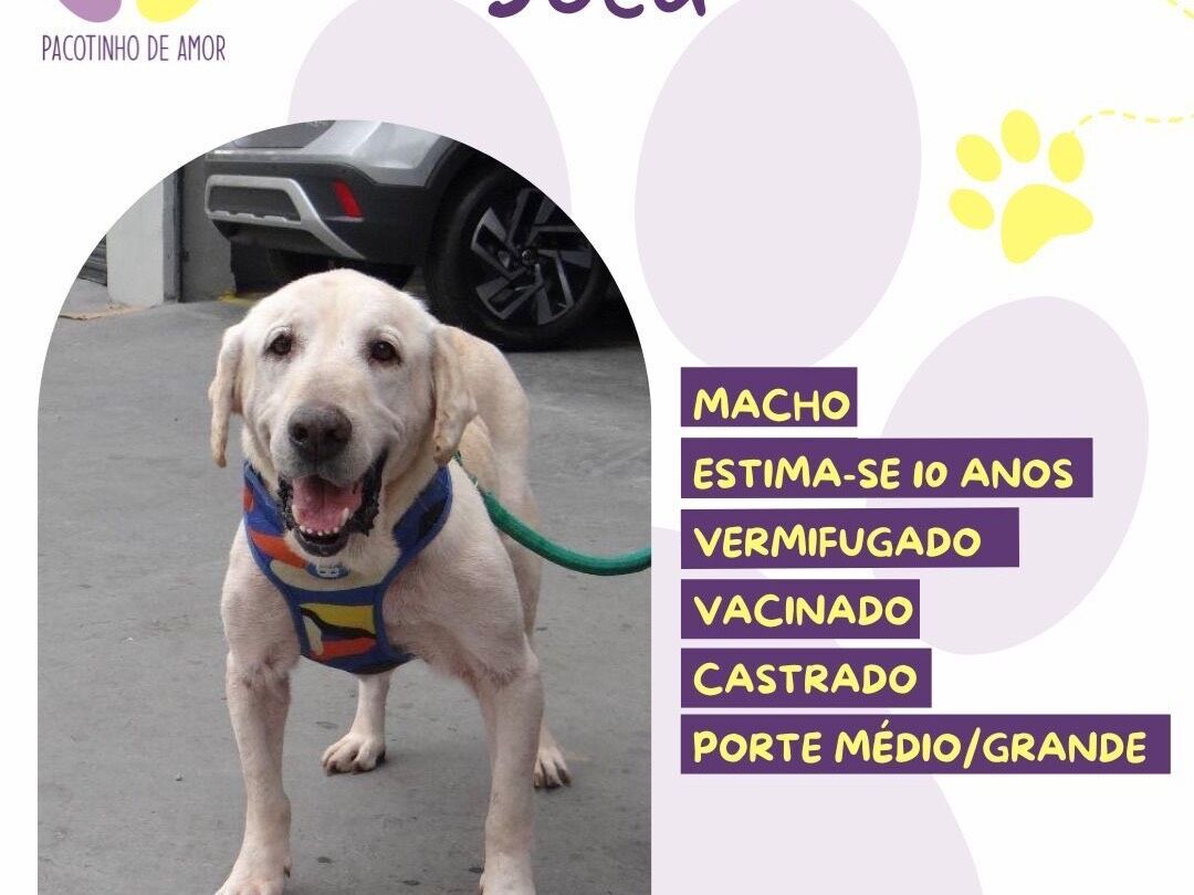 Joca  Macho   Raça: SRD-ViraLata  Porte: Grande   Idade: 6 anos Acima Pelagem: Branca
