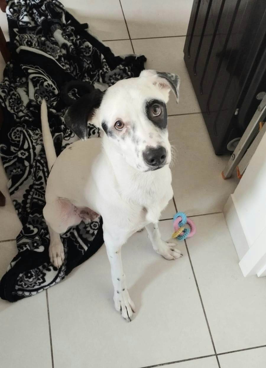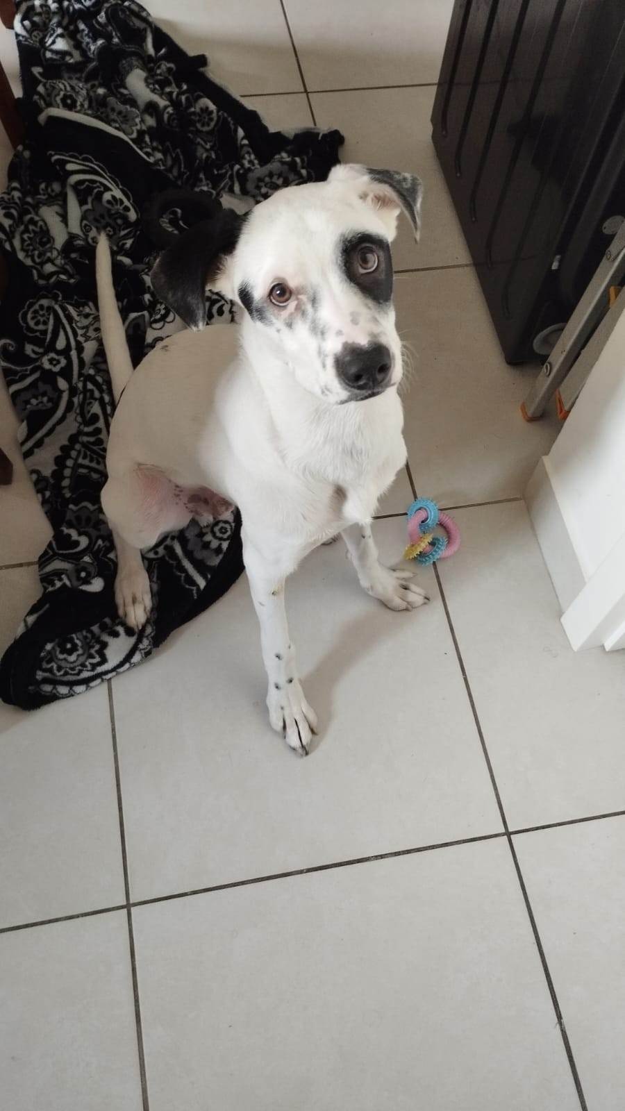 Konam é um menino de 6.meses, será porte médio adulto. Medroso. Muito carinhoso com quem ele convive. Tem bastante energia.