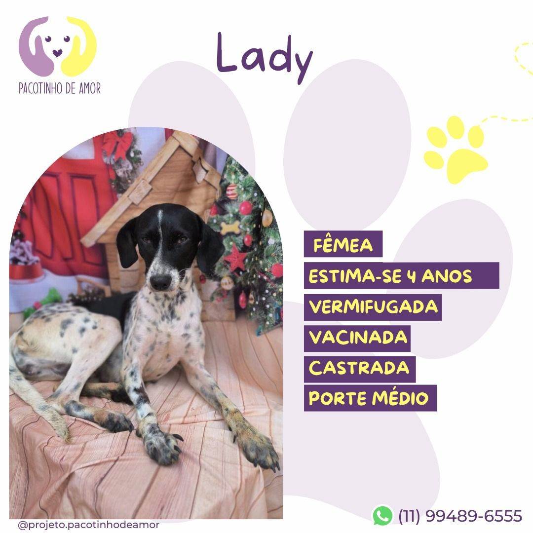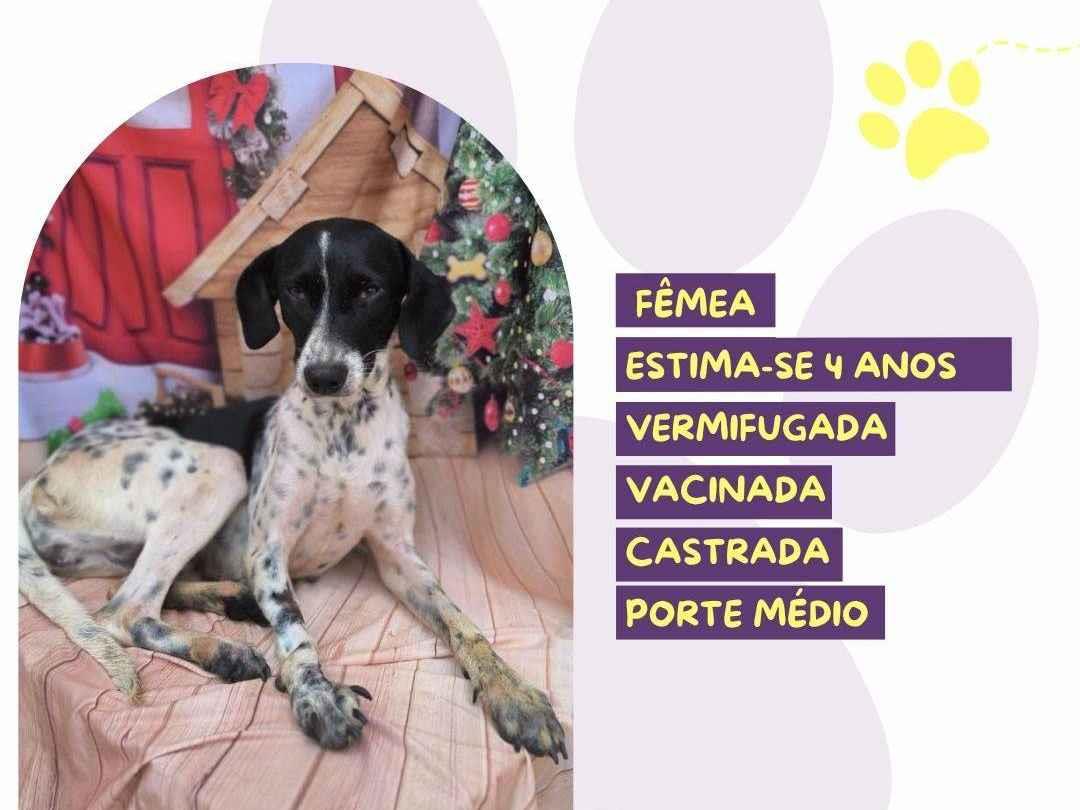 Lady  Fêmea   Raça: SRD-ViraLata  Porte: Medio   Idade: 4 anos Pelagem: Branca/Preta    Critérios para adoção