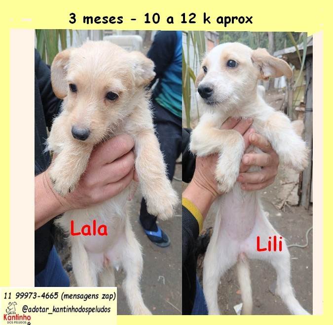 Adoção de cadelas Lalá e Lili, fofinhas e sociáveis, com 3 meses de vida. Prepare-se para uma vida cheia de amor. Conheça outros peludinhos em nosso Instagram.
