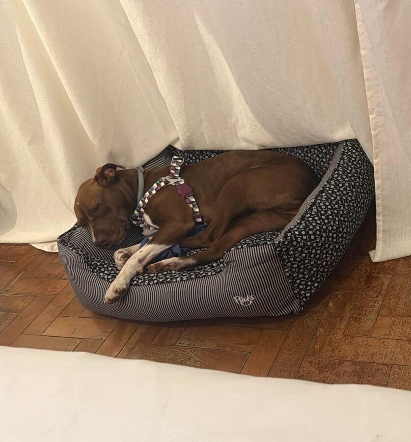 Temperamento: Dócil, carinhosa e tranquila. Ótima com pessoas e outros cães. Não puxa na guia, não late excessivamente. Inteligente - aprende comandos rápido.