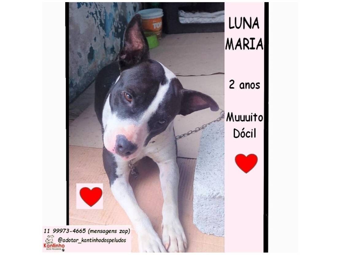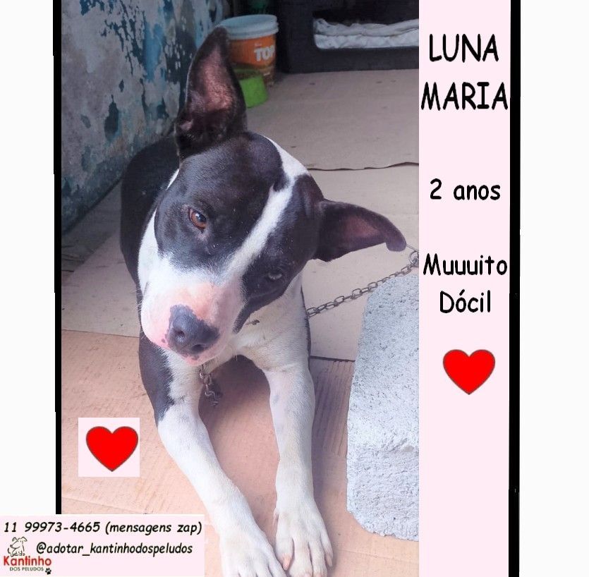 LUNA  Fêmea   Raça: SRD-ViraLata  Porte: Medio   Idade: 2 anos Pelagem: Branca/Preta    Para Adotar essa fofura entre em contato pelo Whatts (11) 99973-4665