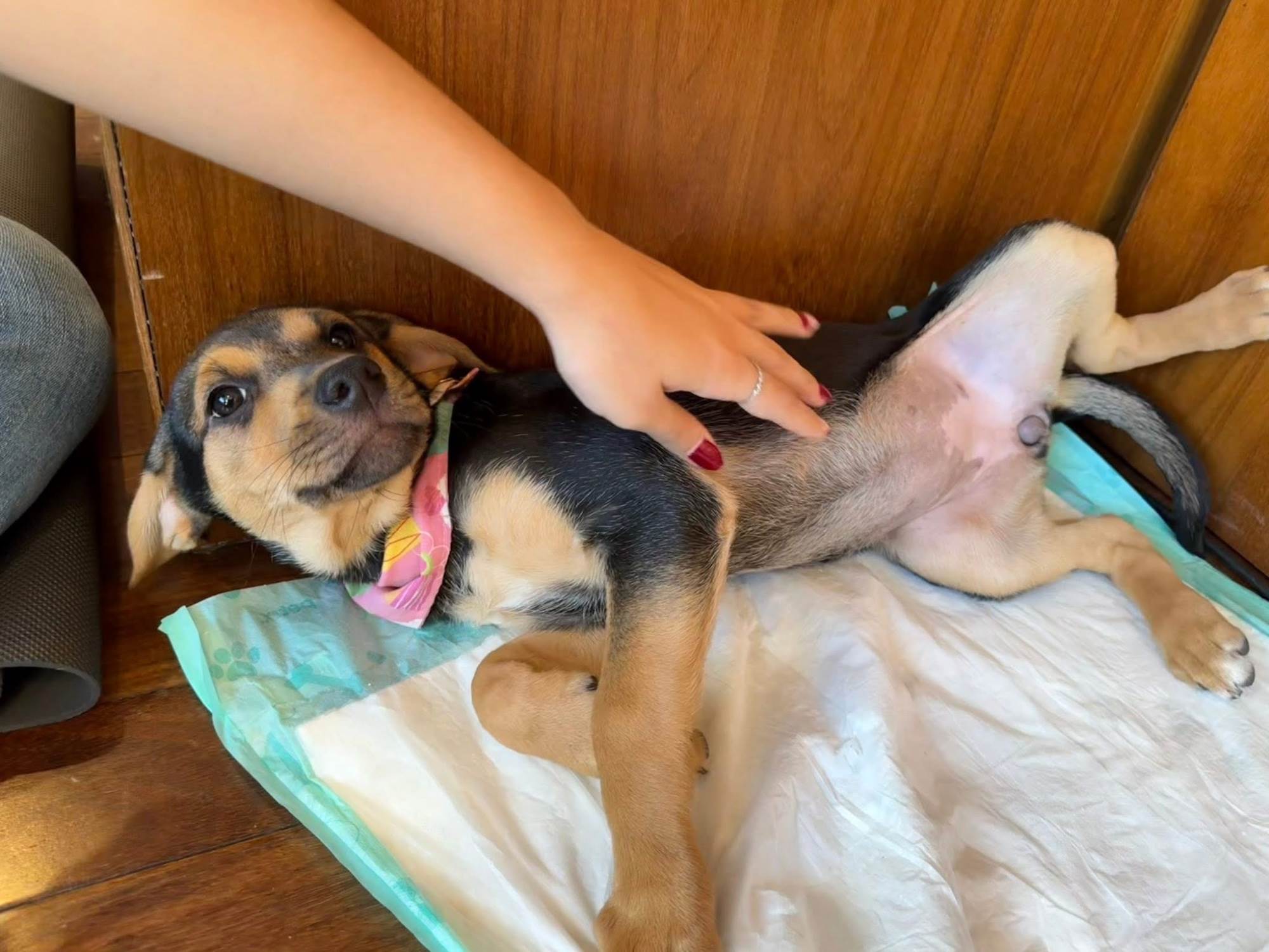 Assinado: Mariângela, 4-5meses, porte médio, vacinas finalizadas, castração obrigatória em um mês..