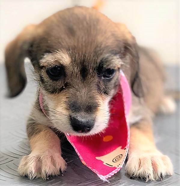 Com apenas 2 meses e meio, essa pequena princesa será de 7 a 9 kg quando adulta.