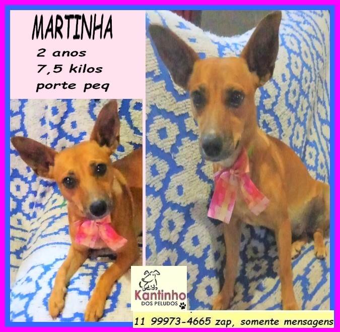 Conheça a Martinha, uma doce cadelinha de 2 anos buscando um lar amoroso. Ela é sociável, brincalhona e cheia de carinho para dar. Adote e faça-a feliz.