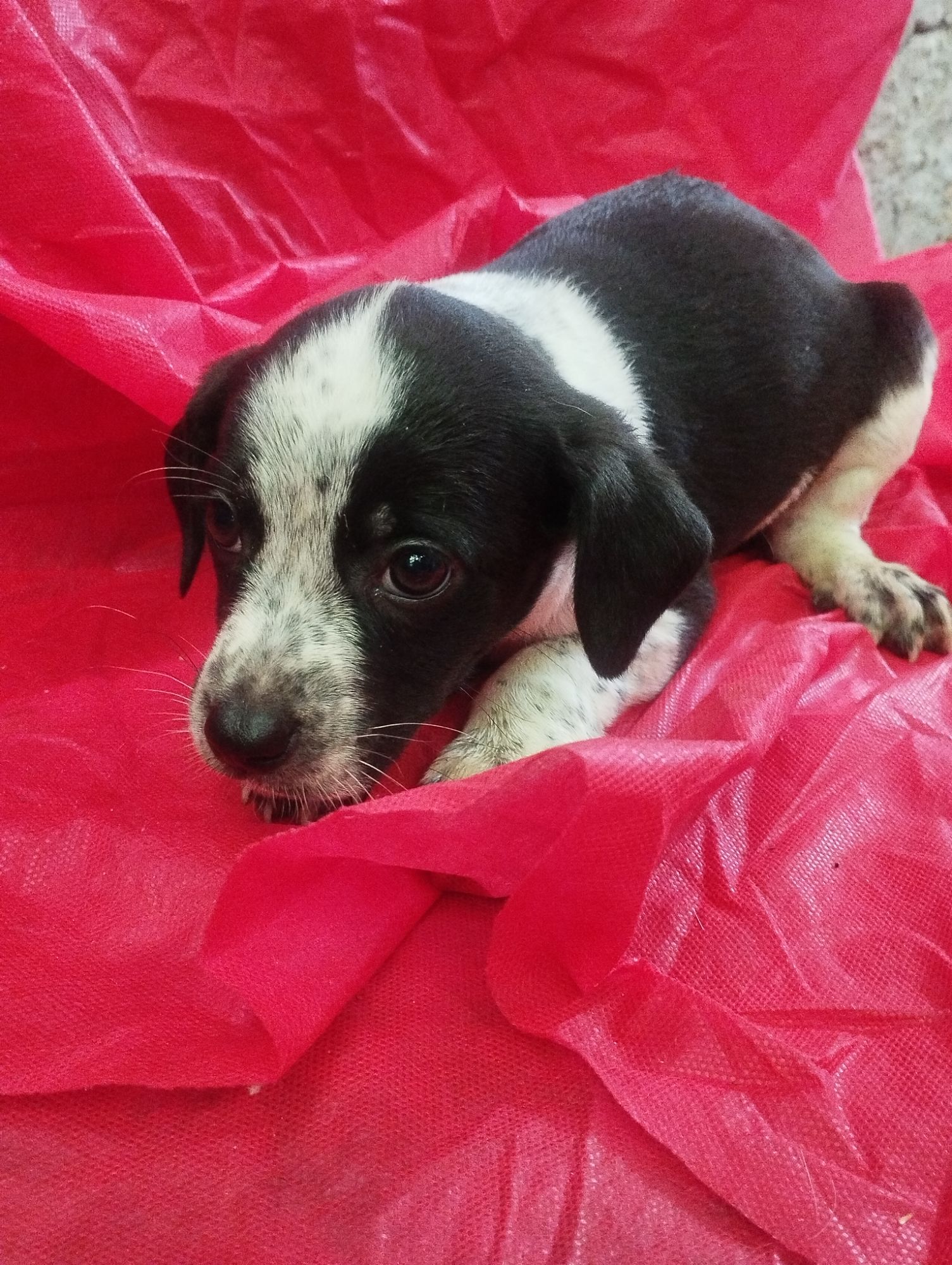 Estamos em busca de um lar amoroso para a nossa querida Meg, uma adorável cadelinha SRD-Vira-Lata com pelagem branca e preta. Ela tem menos de 2 meses e é de porte médio.