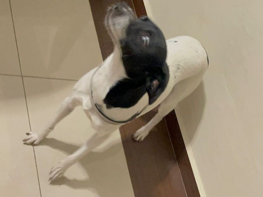 Ela apareceu na porta de casa, demos água, comida e abrigo. Entramos em contato com um abrigo que disse que buscaria ela em 10 dias, mas infelizmente não vieram.