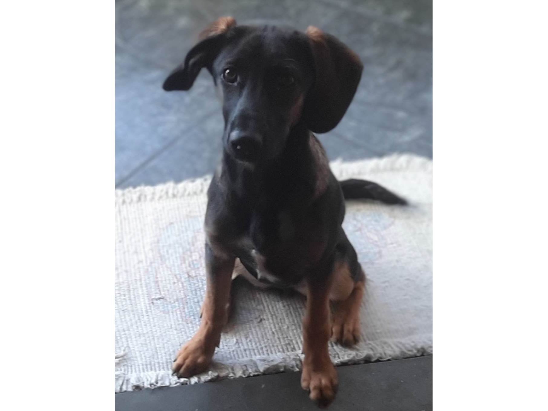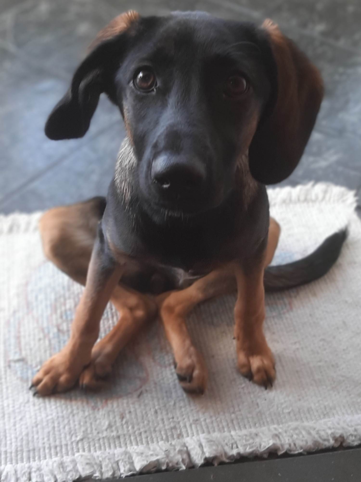 Nárnia é um filhote (fêmea), SRD, com 5 meses, porte médio, vacinada e vermifugada.