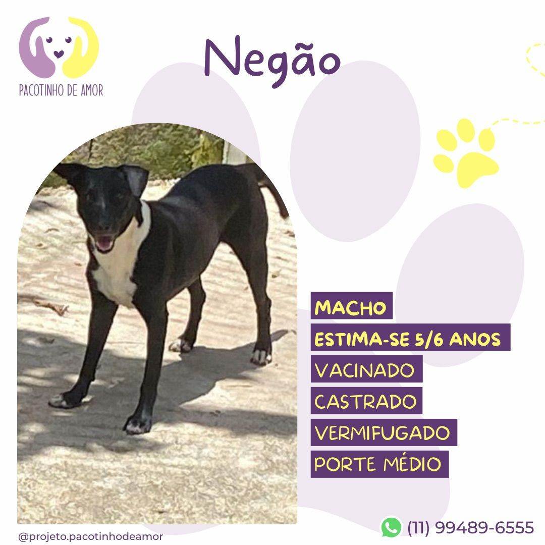 Negão  Macho   Raça: SRD-ViraLata  Porte: Medio   Idade: 6 anos Acima Pelagem: Branca/Preta    Critérios para adoção
