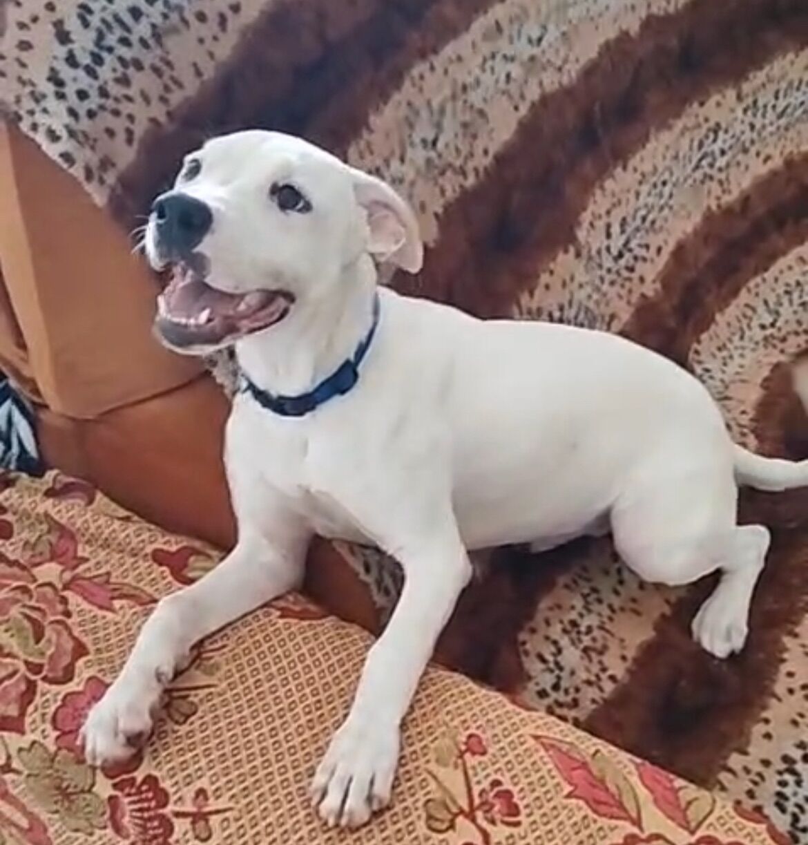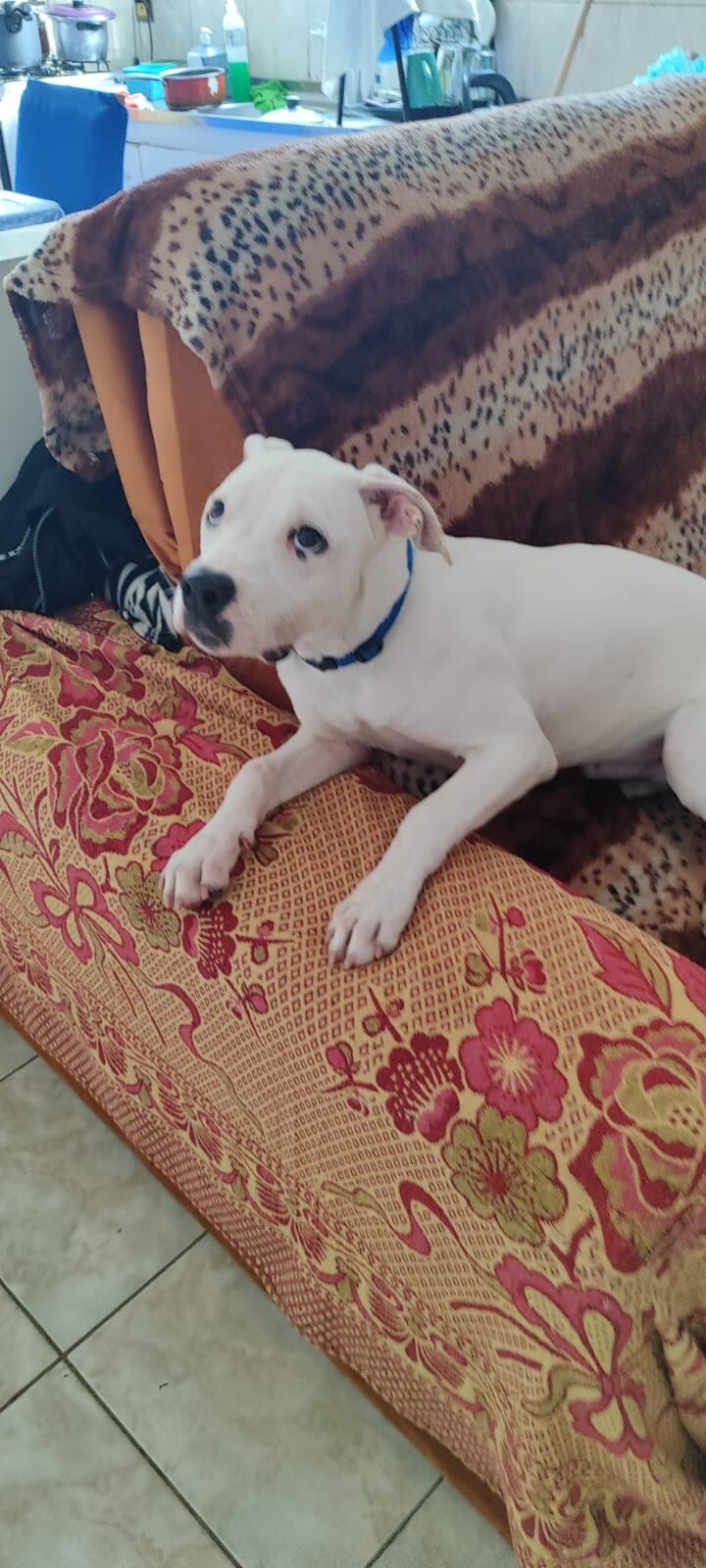 Olie é um adorável cão macho da raça Pit-Bull, com pelagem branca e idade de 7 a 11 meses. Ele possui um porte grande e é um verdadeiro companheiro. Com temperamento dócil e brincalhão, Olie se destaca pela sua sociabilidade. Ele é carente de atenção e adora interagir com todos ao seu redor.