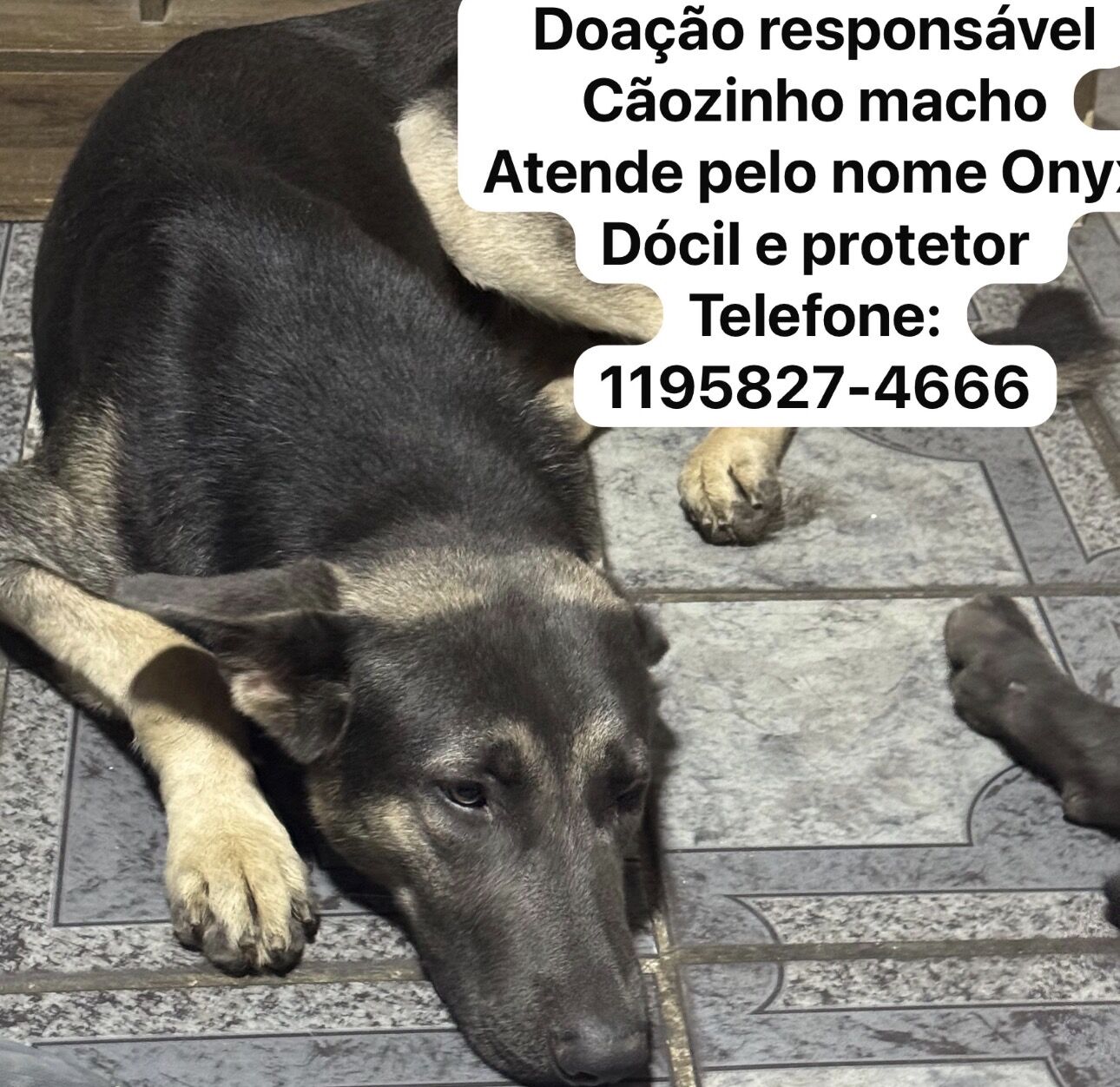 Onyx  Macho   Raça: Pastor Alemão  Porte: Medio   Idade: 1 ano Pelagem: Cinza
