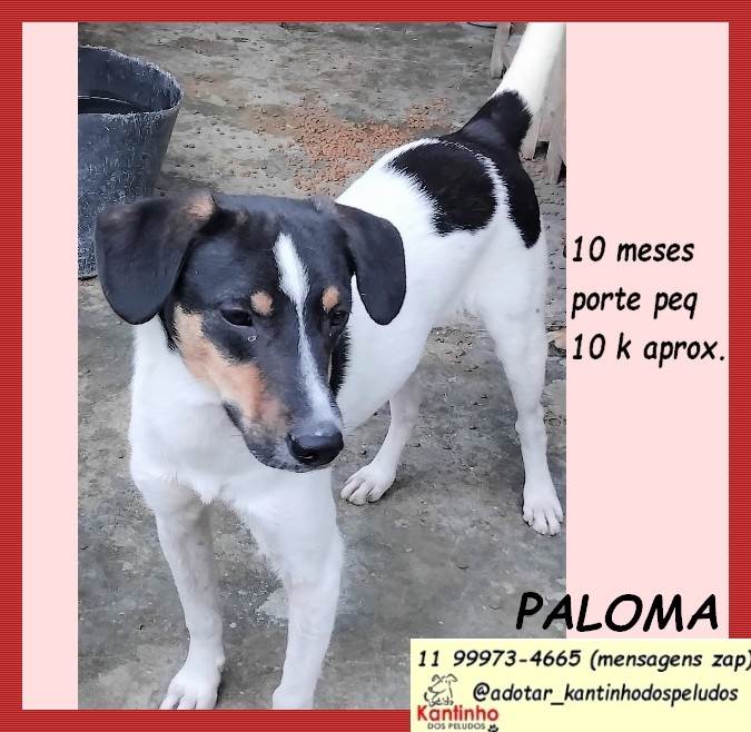 Adote Paloma, uma cadelinha de 10 meses, dócil e brincalhona. Dê a ela um lar cheio de amor e diversão. Confira outros pets disponíveis para adoção.