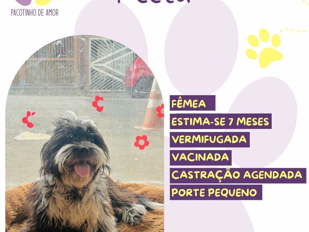 Peeta  Fêmea   Raça: SRD-ViraLata  Porte: Pequeno   Idade: 7 a 11 meses Pelagem: Branca/Preta