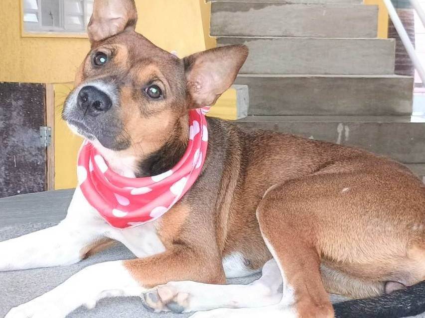 Adote Rebeca, uma cadela linda de um ano, carinhosa e sociável. Ela busca um lar repleto de amor e carinho. Confira mais peludinhos disponíveis para adoção!