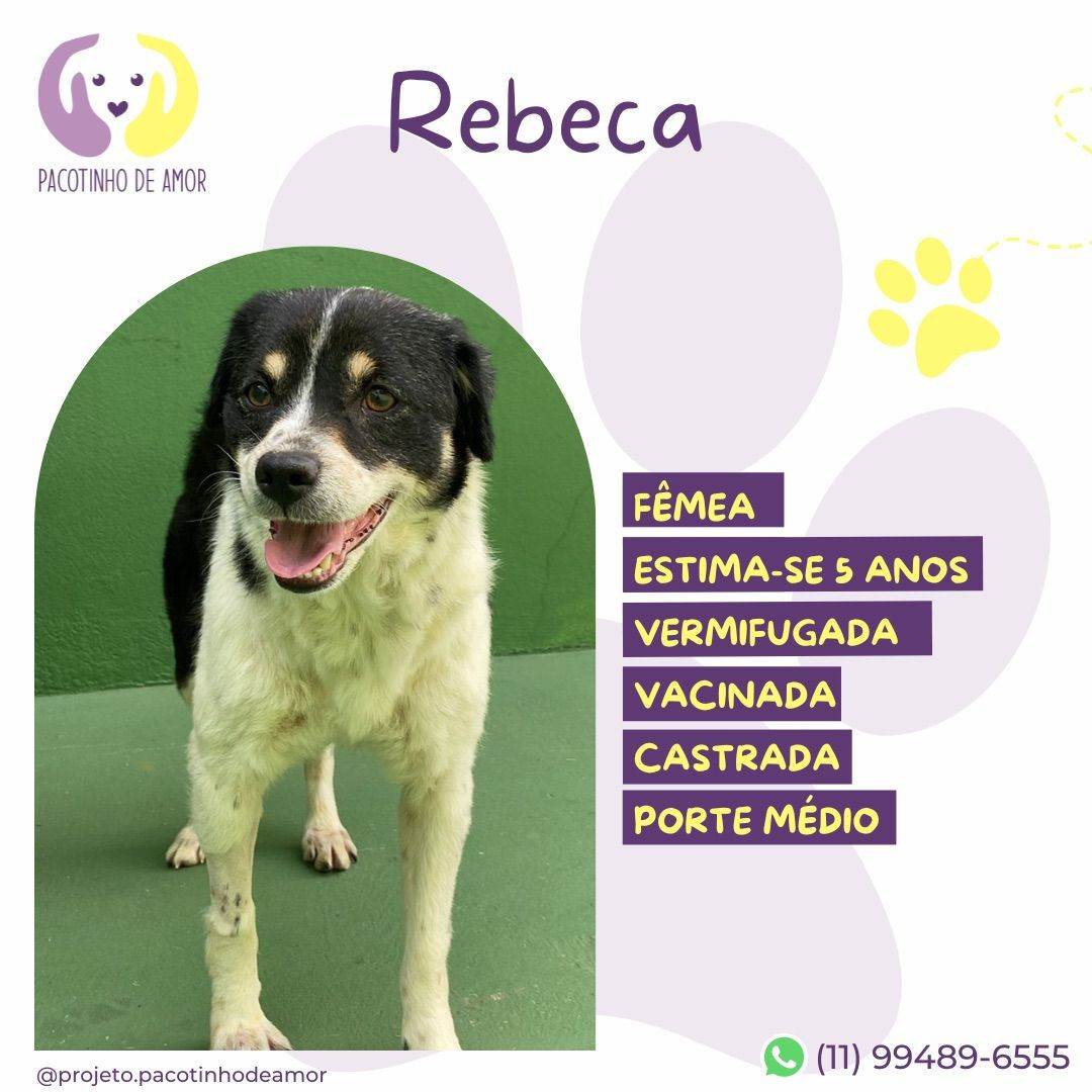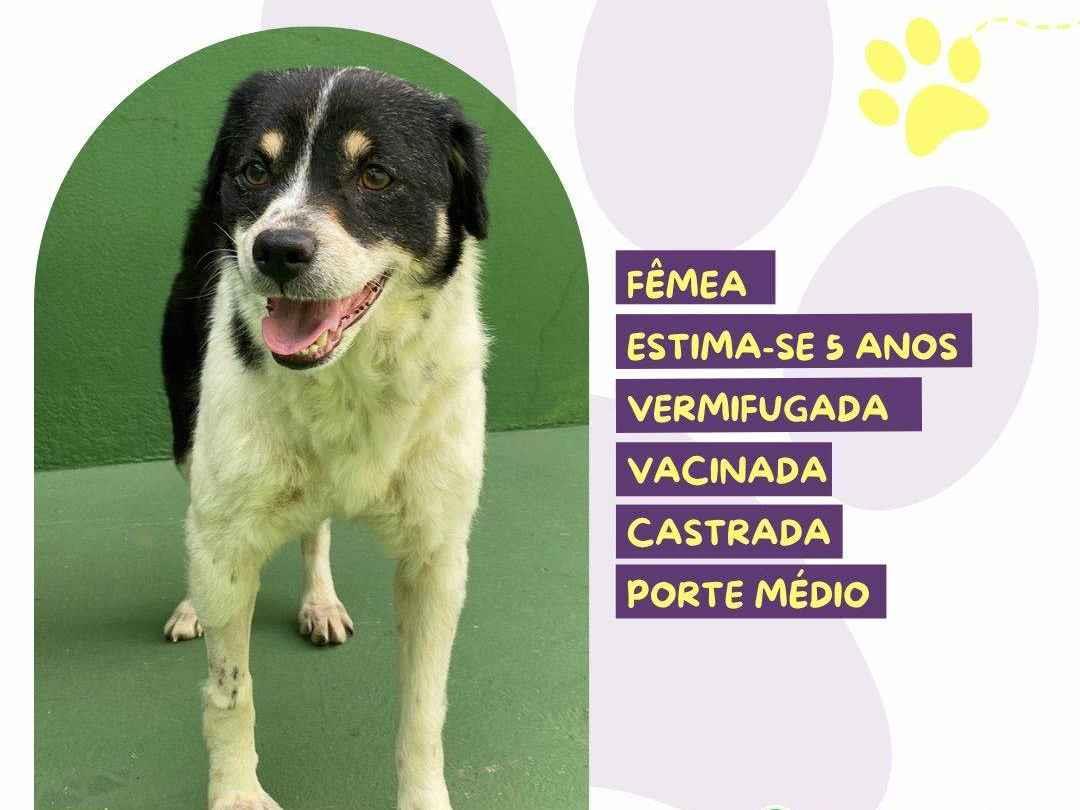 Rebeca  Fêmea   Raça: SRD-ViraLata  Porte: Medio   Idade: 5 anos Pelagem: Branca/Preta    Critérios para adoção