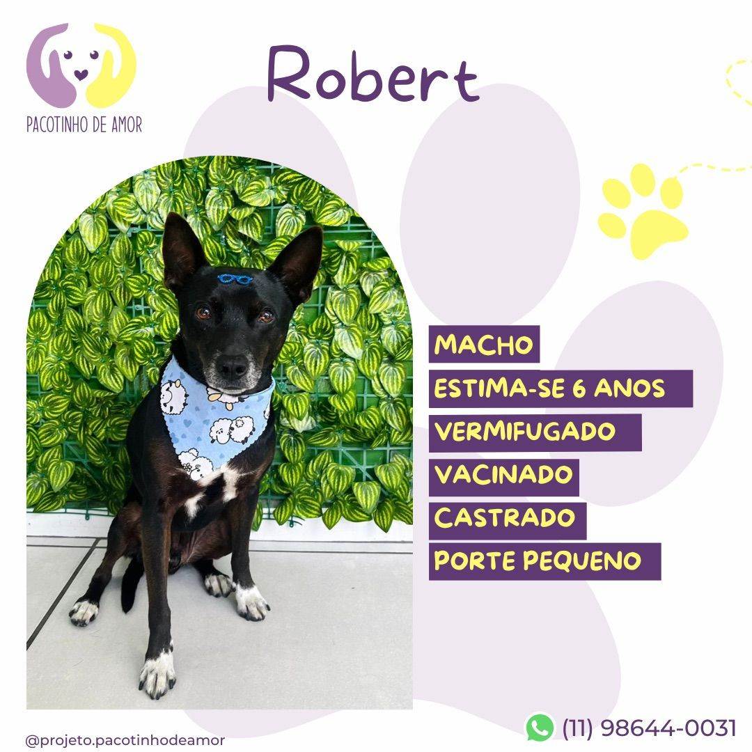 Robert  Macho   Raça: SRD-ViraLata  Porte: Medio   Idade: 6 anos Acima Pelagem: Preta    Critérios para adoção
