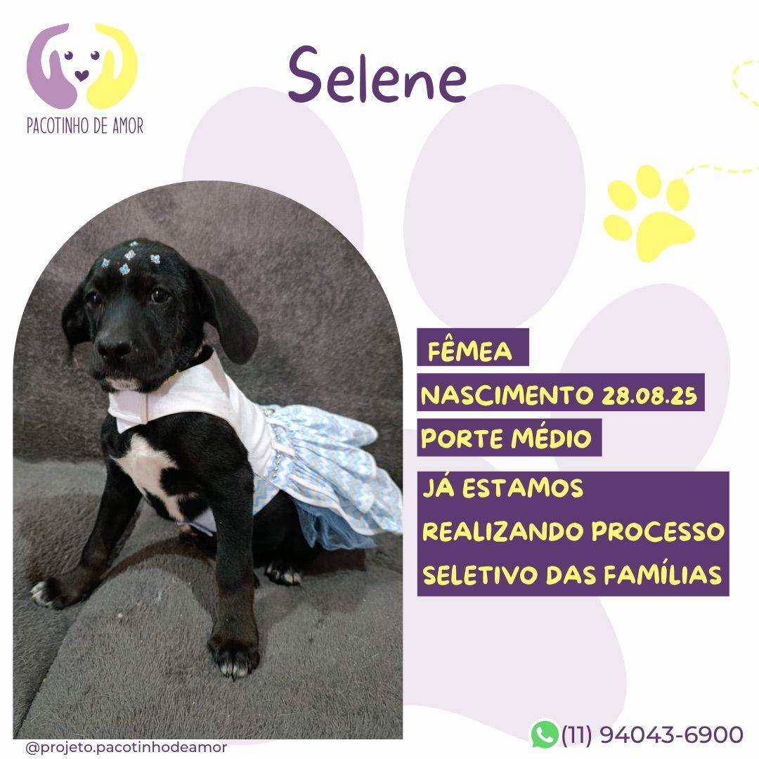 Selene  Fêmea   Raça: SRD-ViraLata  Porte: Medio   Idade: 2 a 6 meses Pelagem: Preta    Critérios para adoção