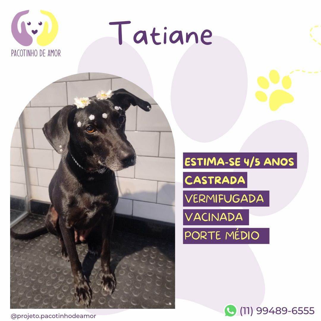 Tatiane  Fêmea   Raça: SRD-ViraLata  Porte: Medio   Idade: 5 anos Pelagem: Preta    Critérios para adoção