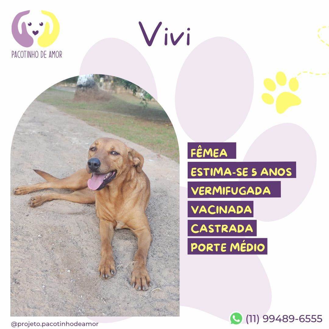 Vivi  Fêmea   Raça: SRD-ViraLata  Porte: Medio   Idade: 5 anos Pelagem: Caramela    Critérios para adoção