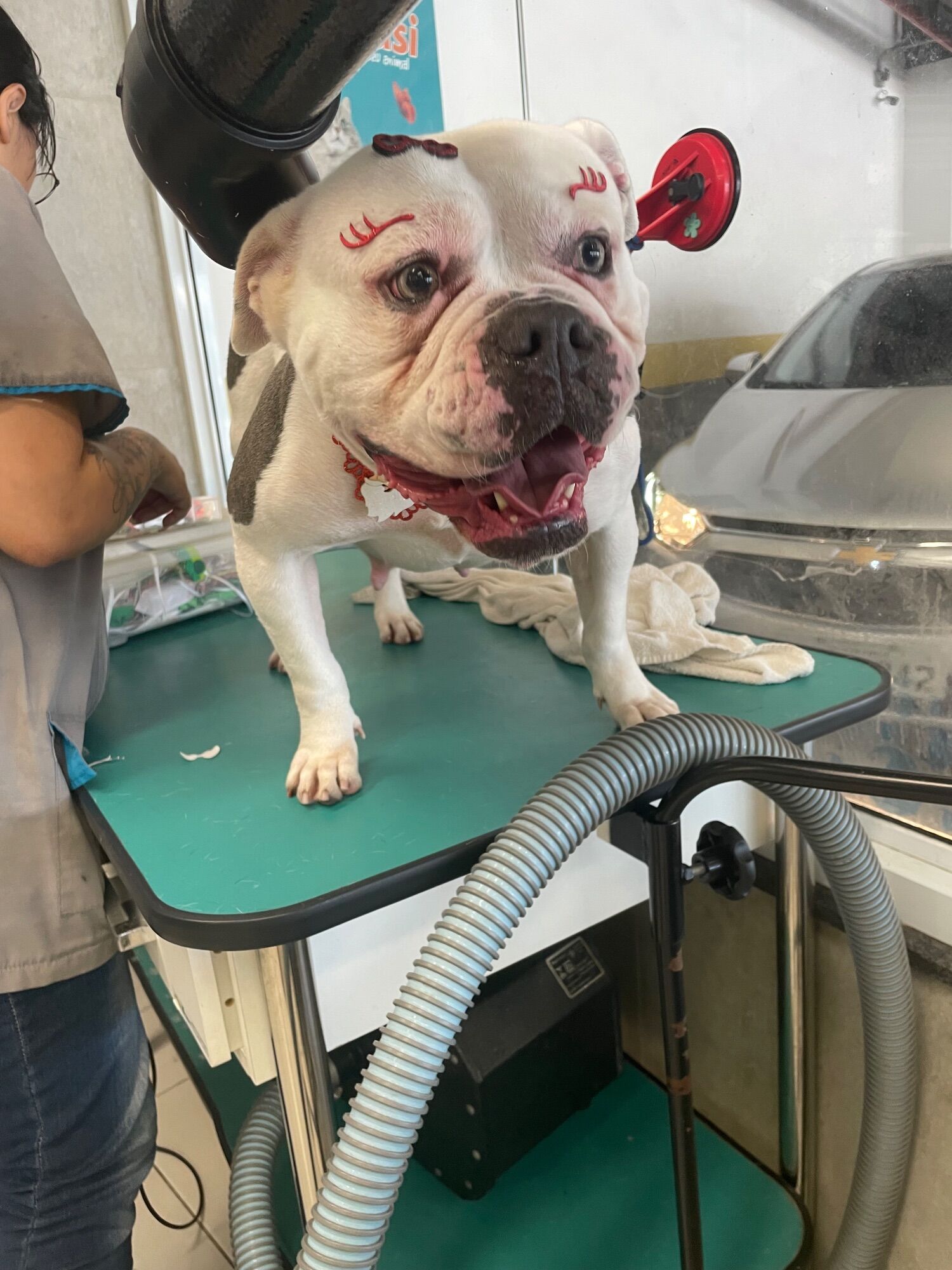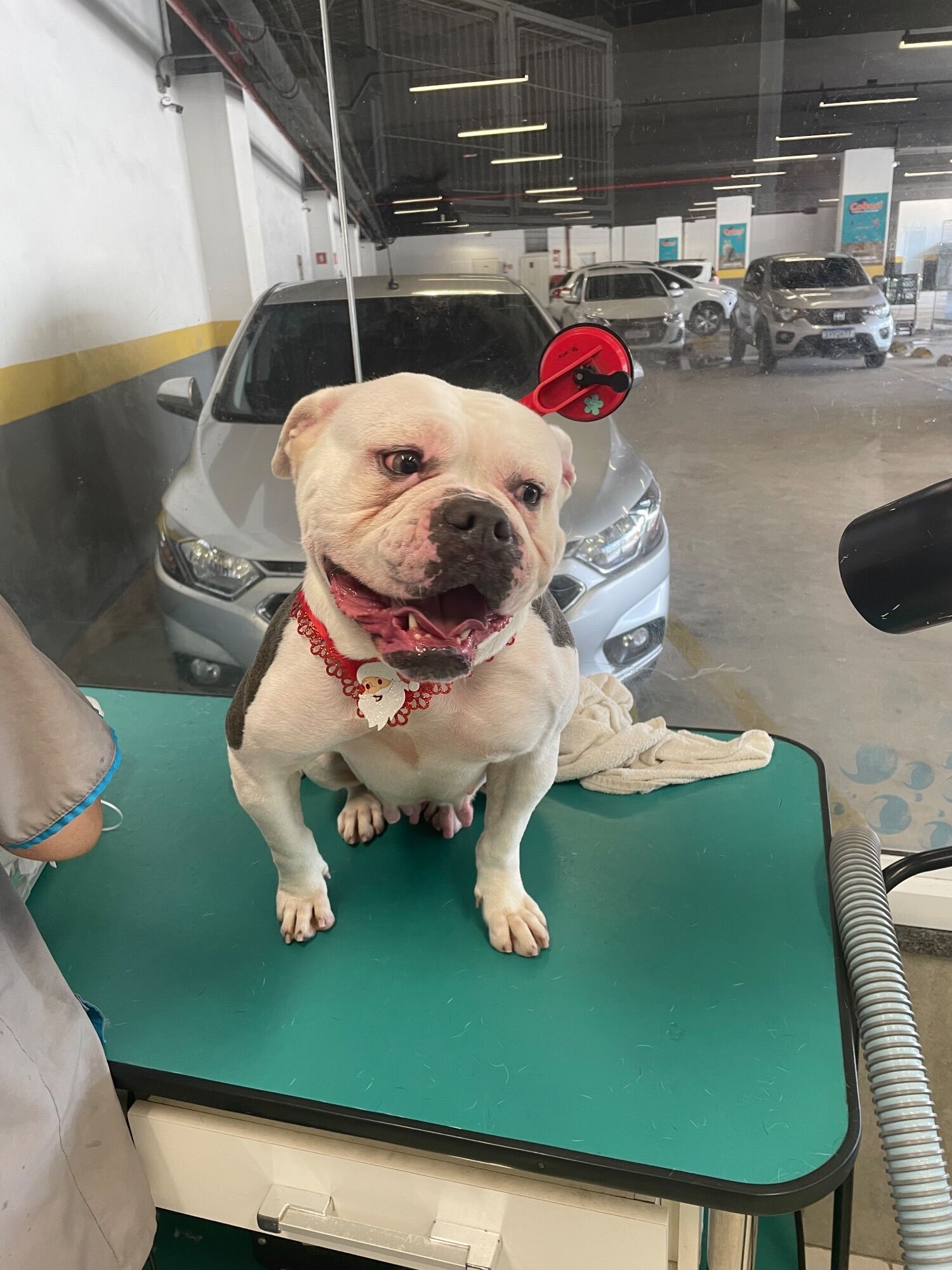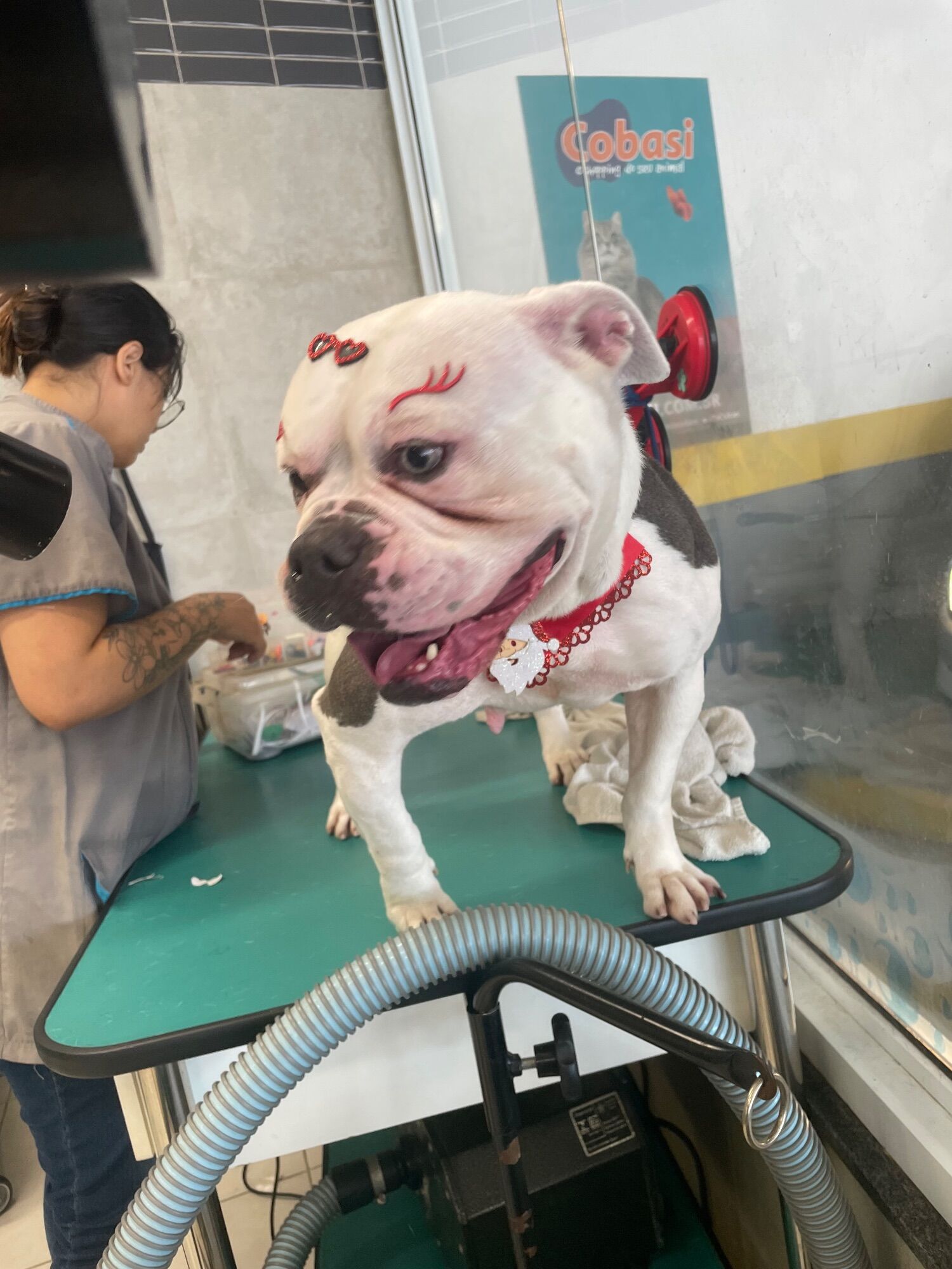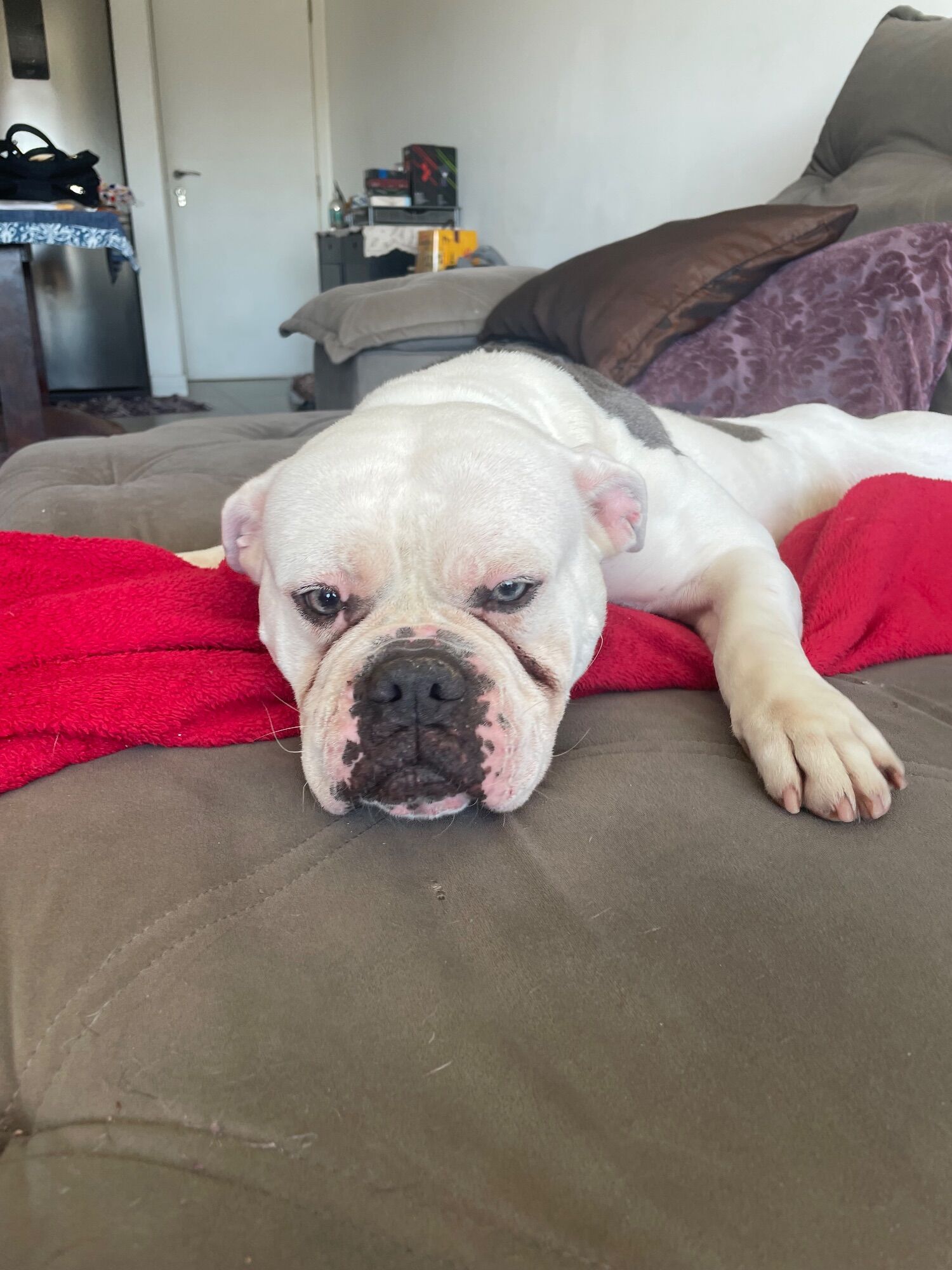 Estamos com ela a poucos dias. Ela é um pote de mel. Muito boazinha. Teimosinha mas obediente. É uma American bully pelo que nos foi dito. Porém não esta se adaptando aqui no apartamento. Está muito entendiada mesmo com passeios e o espaço está inadequado pra ela. Não é justo mantê-la assim. Gostaríamos que ela tivesse a oportunidade de estar em um local mais apropriado, além de ter todo o amor que merece.