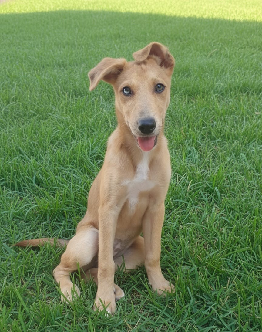 Sou caramelo merle, tenho heterocromia setorial - metade do meu olho é azul e a outra metade preto. Tenho 5 meses. Mamãe foi abandonada desnutrida e no cio em um parque, com isso, nasceu 10 filhotinhos. Fomos nutridos, suplementados e amamentados, crescemos juntos até aqui. Sou calma, delicada, sensível, carinhosa e brincalhona!