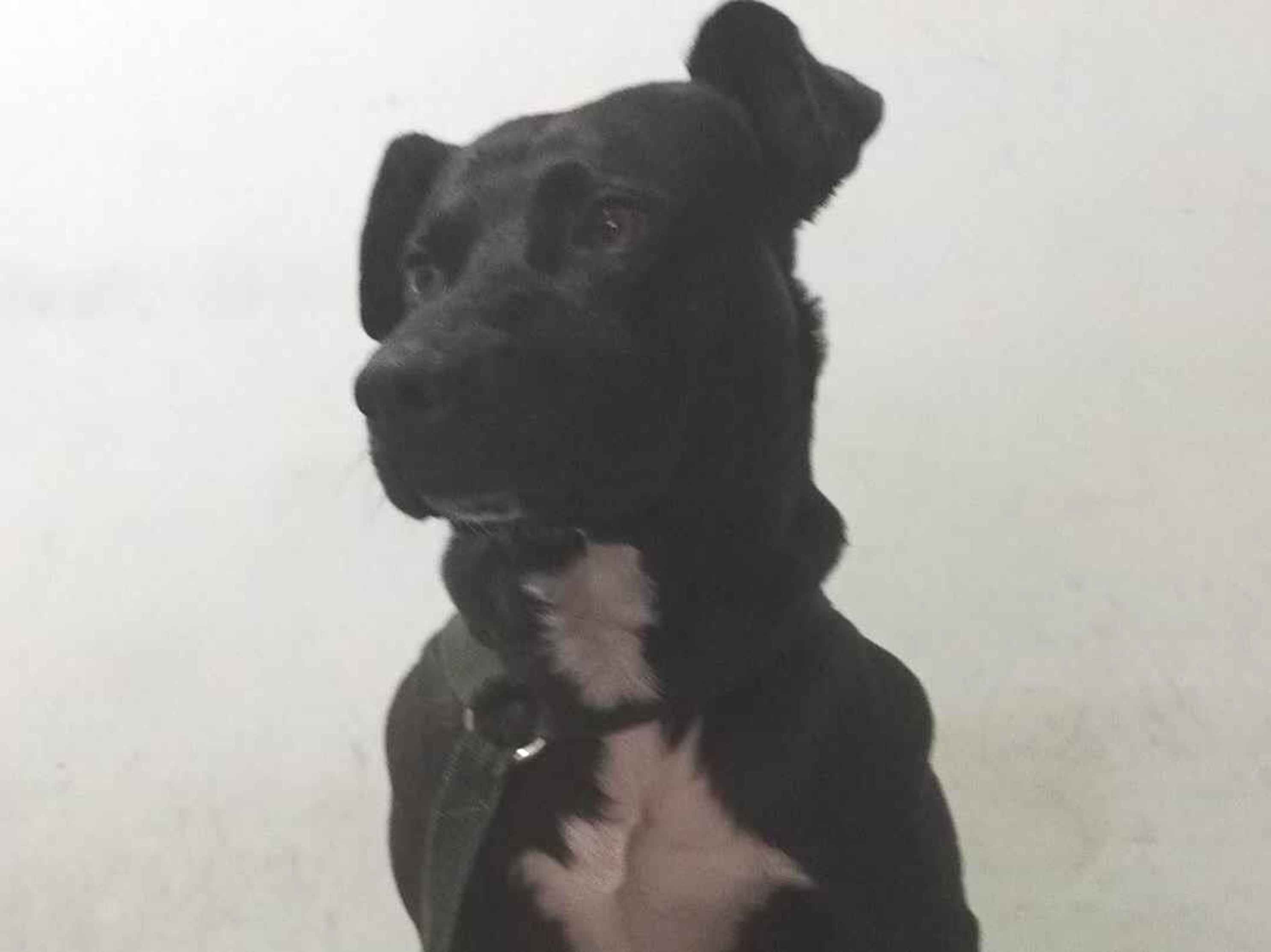 Srd preto e peitoral branco. Pelo bem curto e liso.
