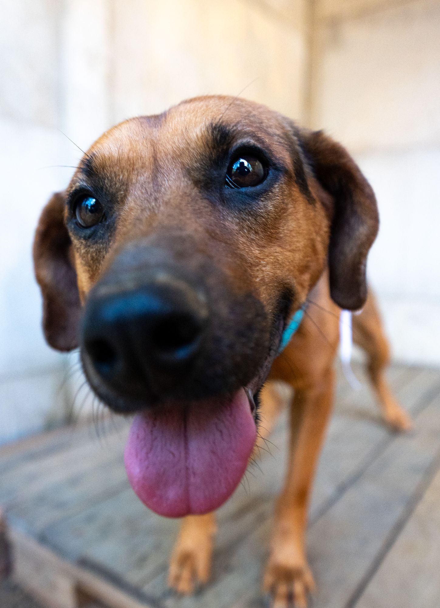 De porte pequeno/médio, ele se dá bem com outros cães e adora ficar por perto, quietinho, só curtindo o carinho.