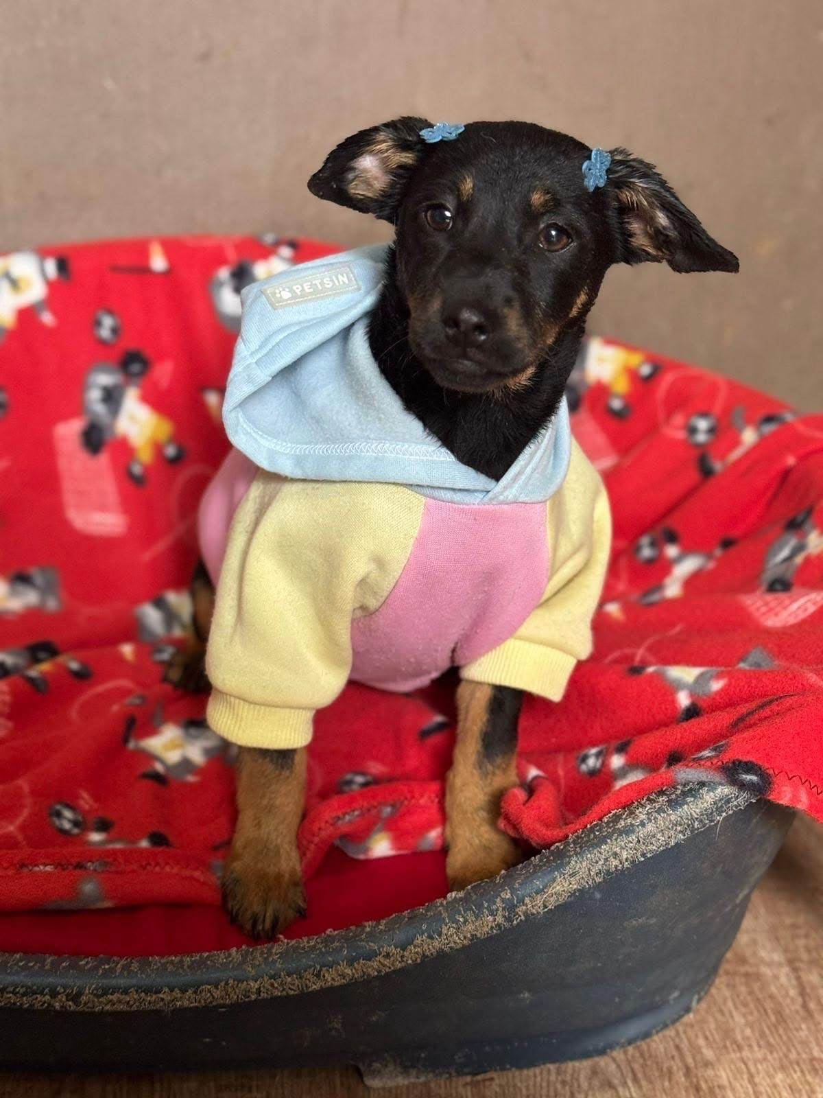 Porte pequeno, vacinas em andamento, castração obrigatória após protocolo de vacinas.